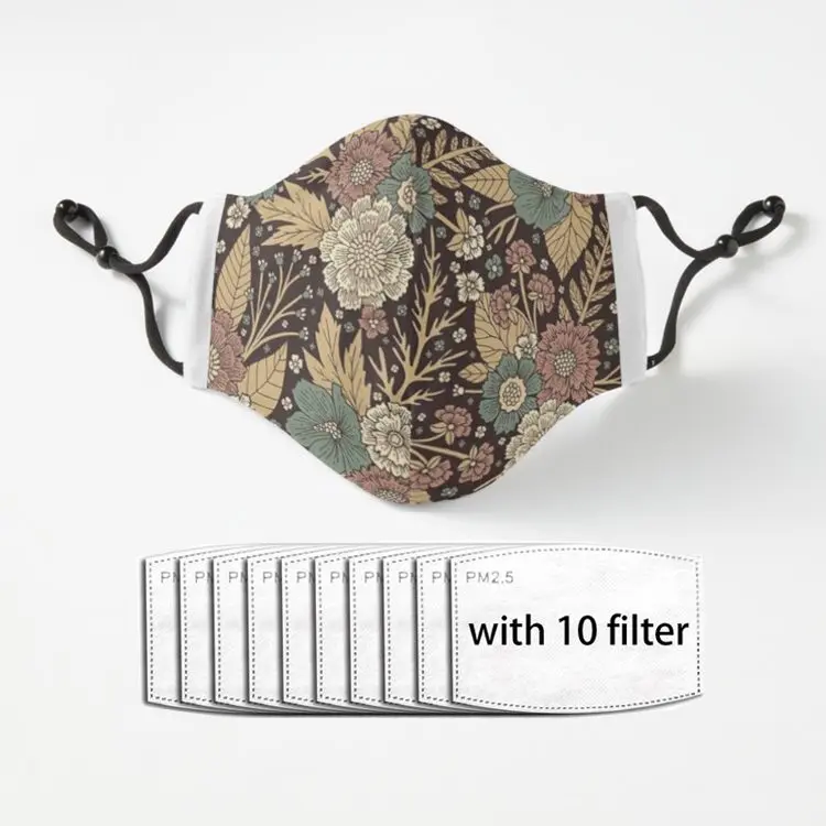 Маска для взрослых многоразовая из полиэстера, маска для лица и рта, светло-зеленая, оранжевая, зеленая, коричневая, с цветными розами в ассортименте