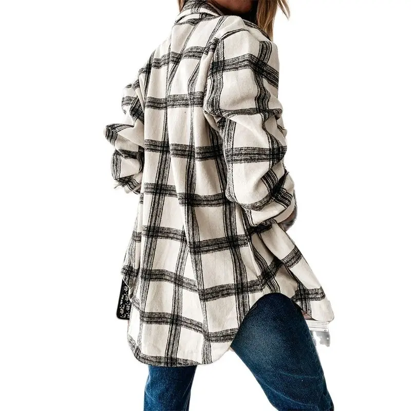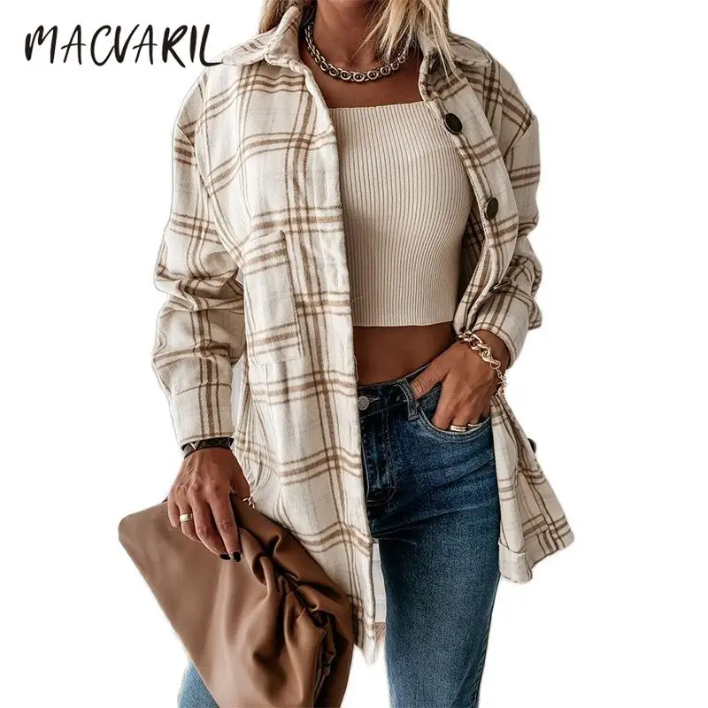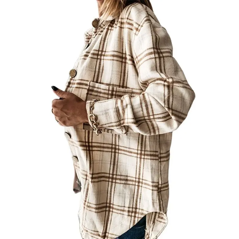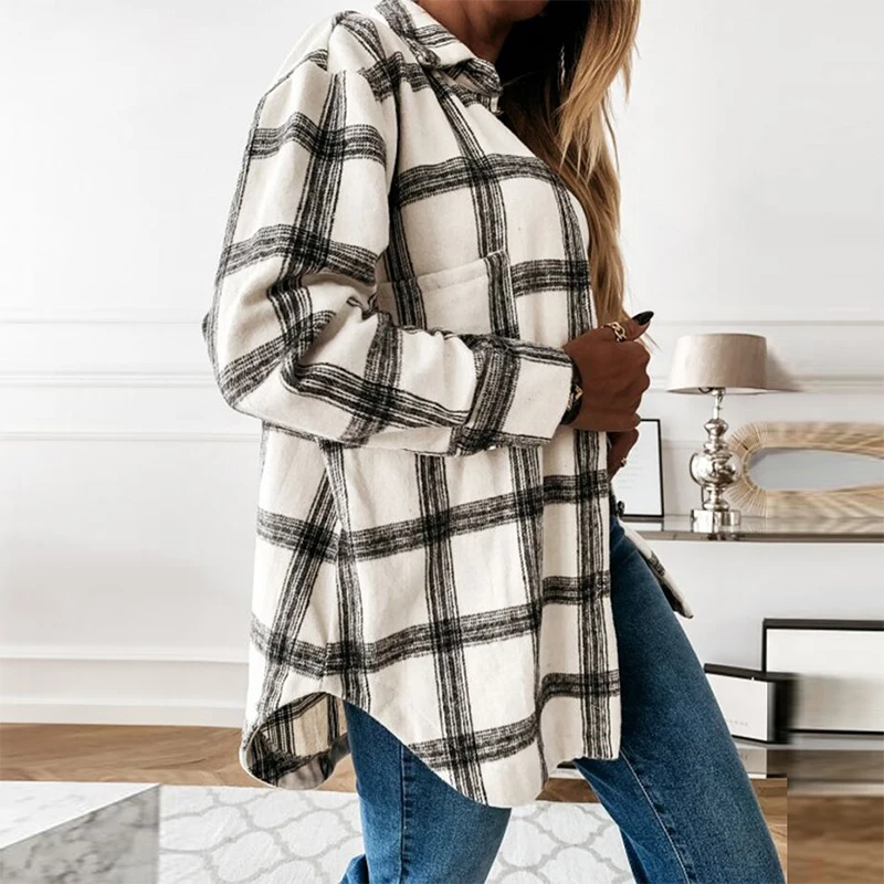 Осень-зима 2021, теплая элегантная рубашка с отложным воротником, Женская Классическая клетчатая Повседневная куртка с длинным рукавом, свободная уличная одежда