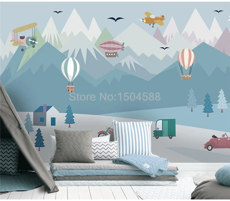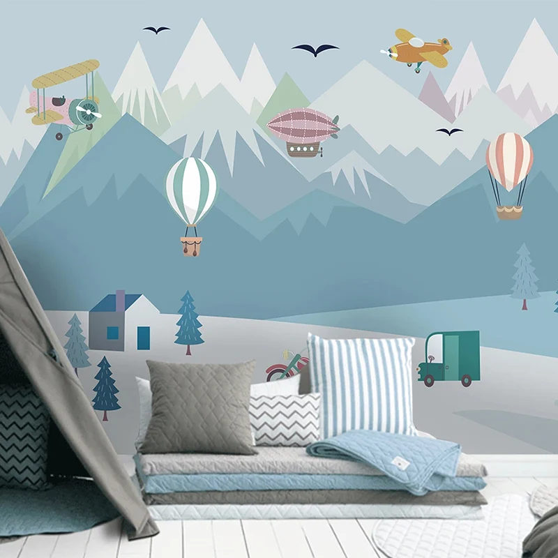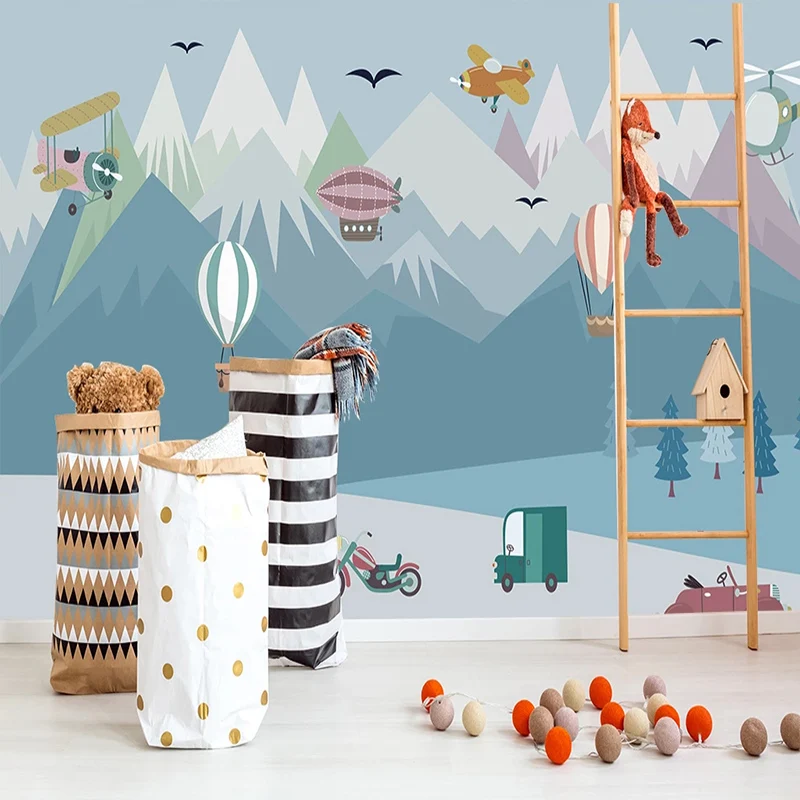 3D Настенные обои на заказ, синие милые Мультяшные воздушные шары, самолёт, автомобиль, свежий фон для детской спальни, настенная роспись, Papel De Parede