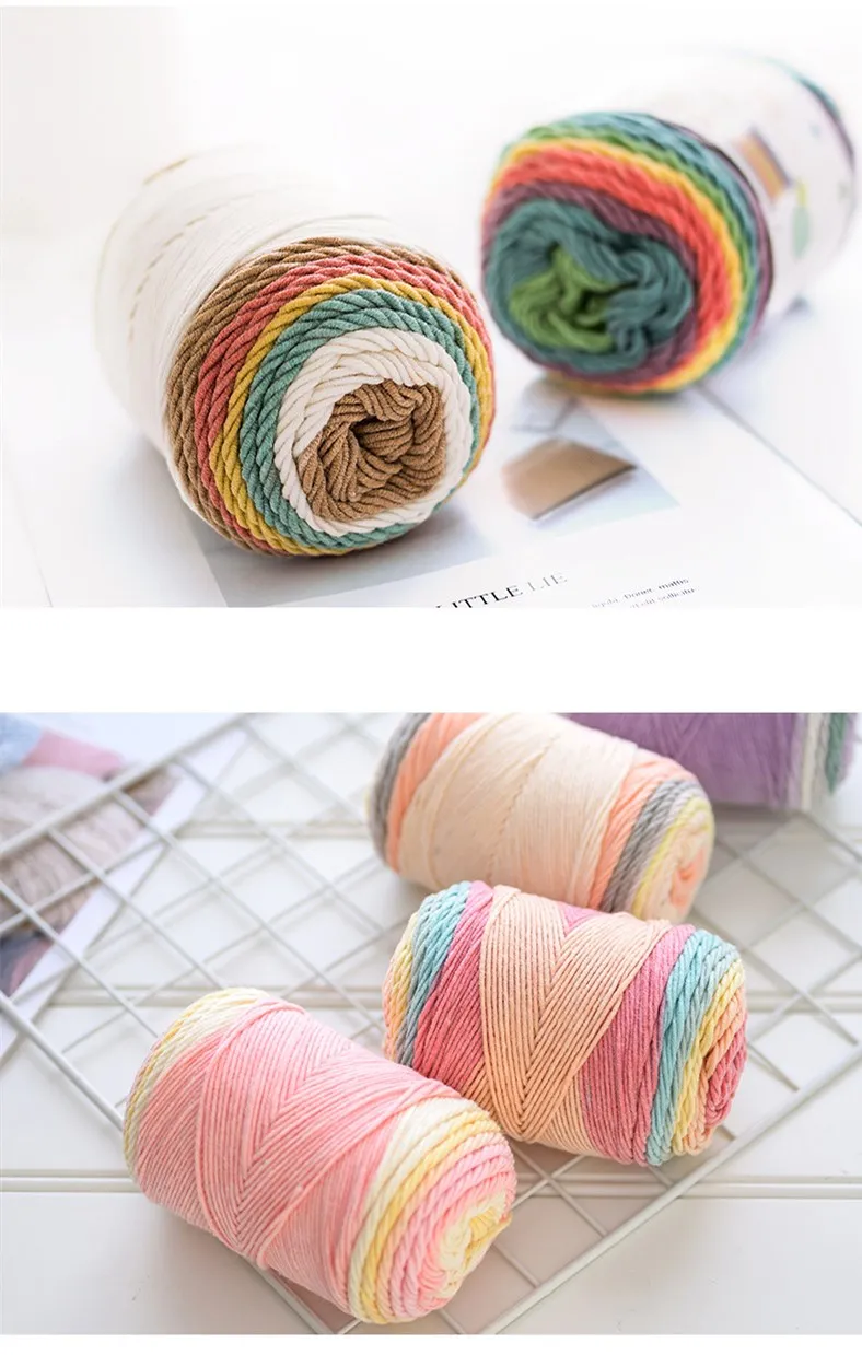 Хлопковая пряжа, 100 г, 193 м, 5 нитей, окрашенная в радугу, шерстя...