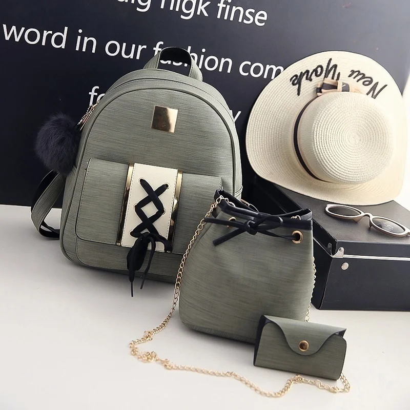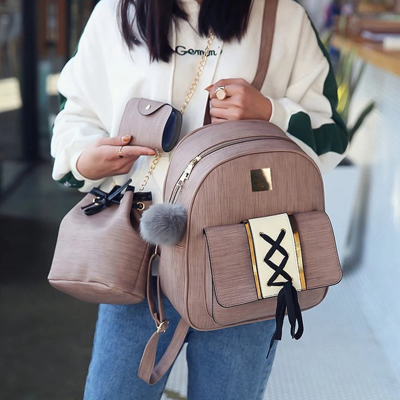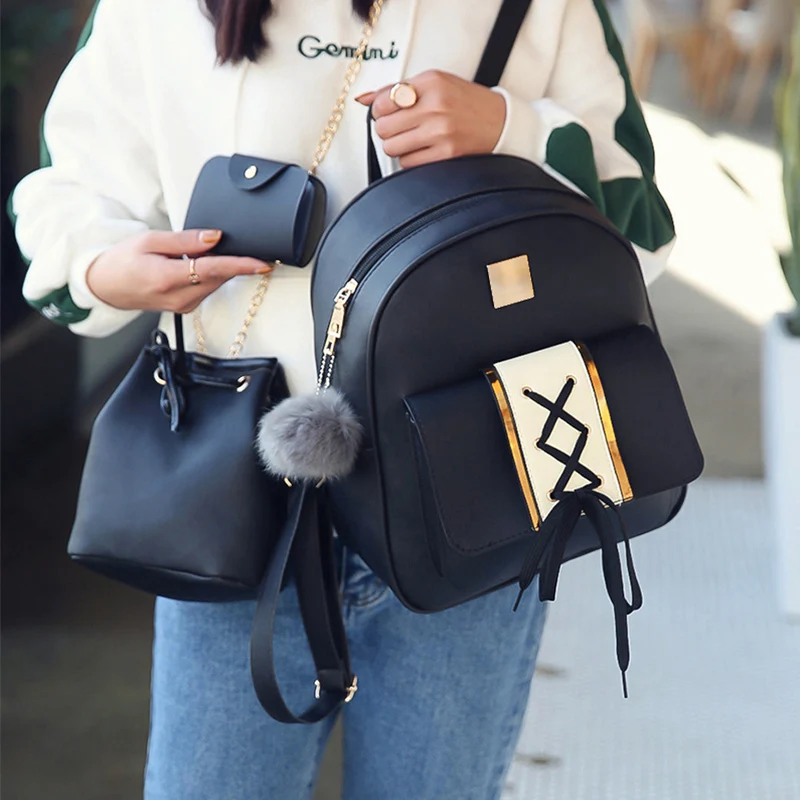 Рюкзак женский из искусственной кожи, школьный, дорожный, 3 шт.