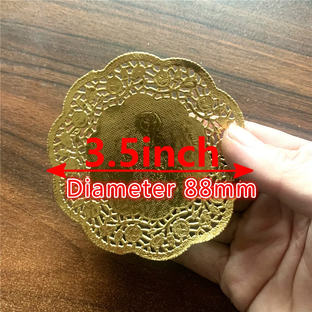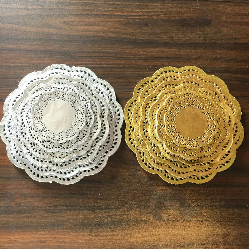 Декоративные кружевные коврики для столовой посуды, круглые золотые и серебряные кружевные салфетки для украшения стола, 20 шт., 3,5, 4,5, 5,5, 6,5, 7,5, 8,5 Дюймов