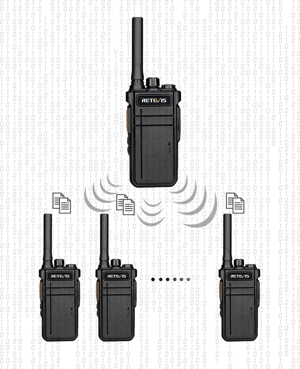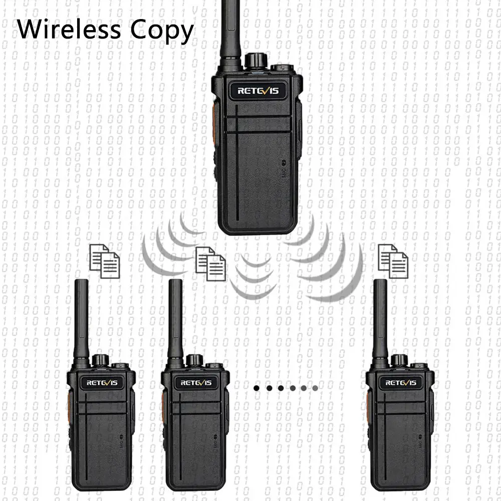 Беспроводная передача данных (частота и параметр) между рациями без программного обеспечения программирования.