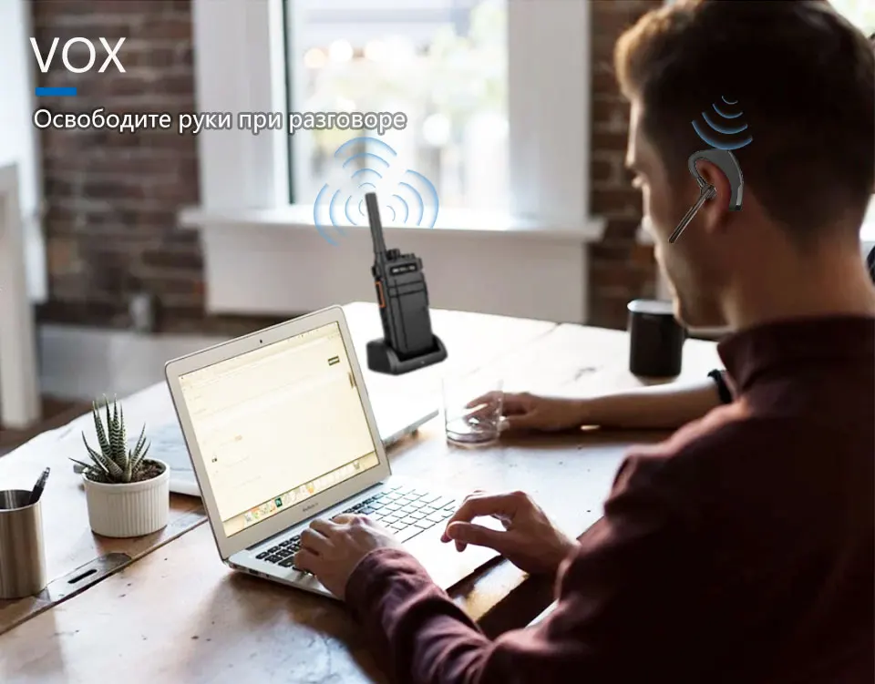 При активном использовании функции VOX вы можете общаться с другими без нажатия кнопки walkie talkie PTT, и вы также можете использовать bluetooth-наушники для разговора, не нажимая PTT.Освободите руки, также вам не нужно организовывать кабель с помощью беспроводного наушника.