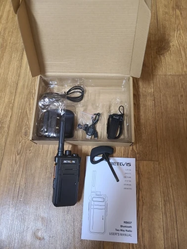 제품 가볍고 성능 괜찮습니다. 페어링은 무전기의 좌측 하단의 버튼 두개를 동시에 누르고 이어폰의 전원을 켜면 자동으로 연결됩니다. 500미터 이내 테스트결과 만족합니다.