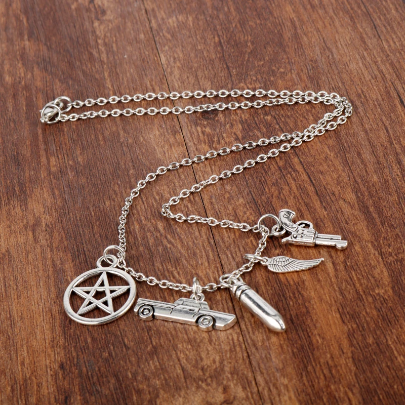 Волшебное Сверхъестественное ожерелье с крыльями ангела пентаграмма сверхъестественный Амулет ожерелье с кулоном защита Готическая ювелирные изделия Wicca подарок