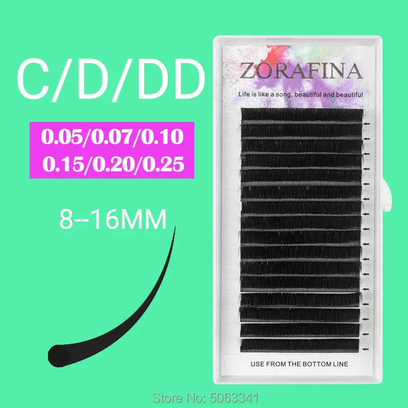 Индивидуальные натуральные накладные ресницы ZORAFINA, искусственные, ненастоящие, поддельные ресницы, 16 рядов, мягкие ресницы C D DD