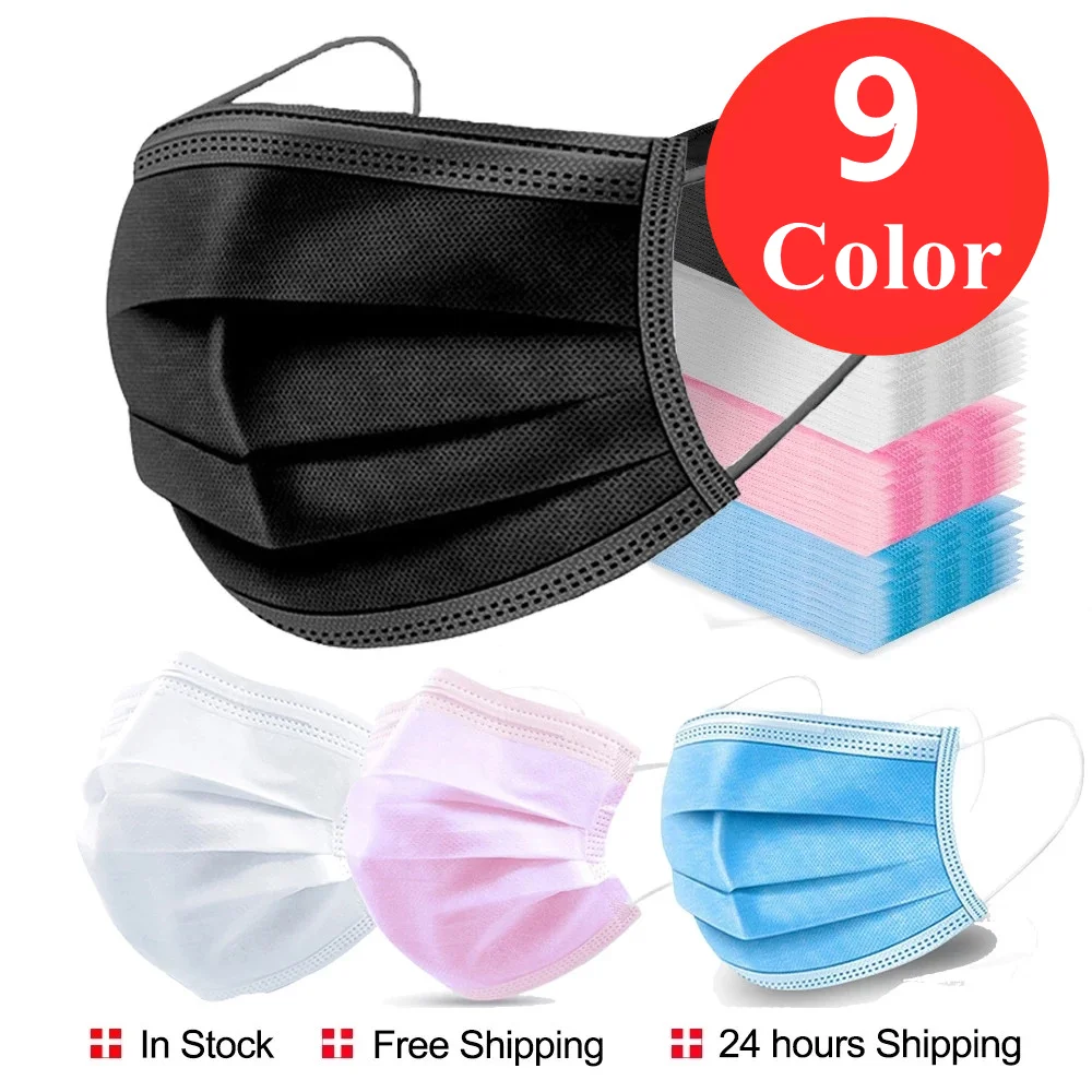 В наличии! 100 шт Черный Серый одноразовая маска на лицо 3 слоя аэр...