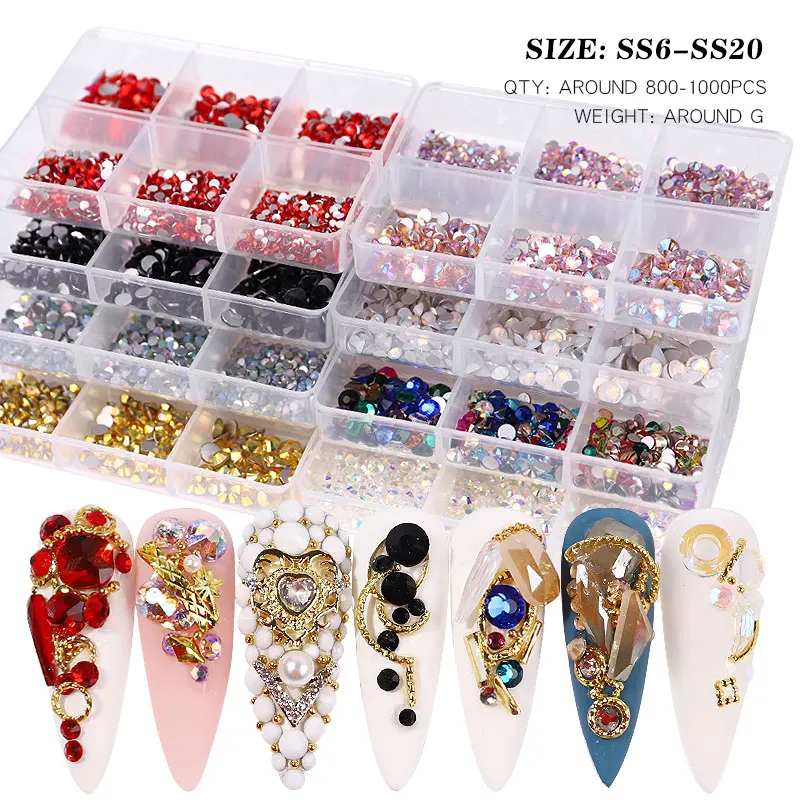 6 ячеек Стразы с плоским дном художественные украшения Модные аксессуары для ногтевого дизайна 2021 ювелирные изделия для маникюра