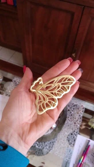 Пряжка симпатичная, красиво подарки, довольно жесткая, имеет плохую изюминку, так как кому-то не нравится тугая застежка для волос okej :)