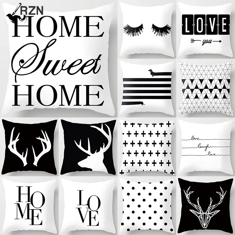 Черная, белая декоративная подушка с геометрическим рисунком и надписью чехол для подушки из полиэстера, декоративная наволочка для дивана или кровати, 40525