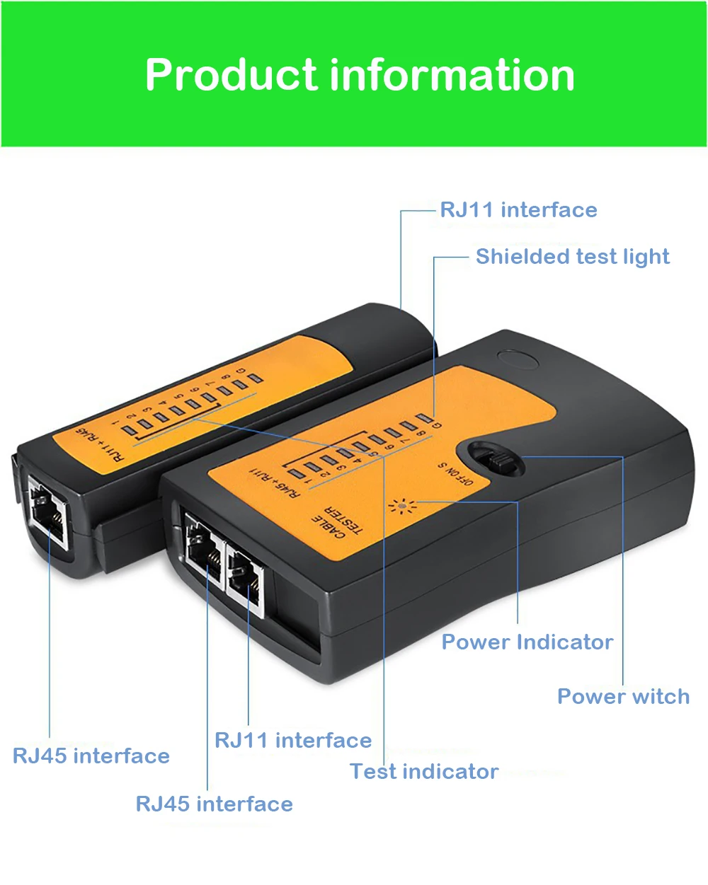 Если тестовые патч-панели или стеновые пластины, два кабеля, которые могут соответствовать друг другу (RJ45), будут подключены к тестеру.
