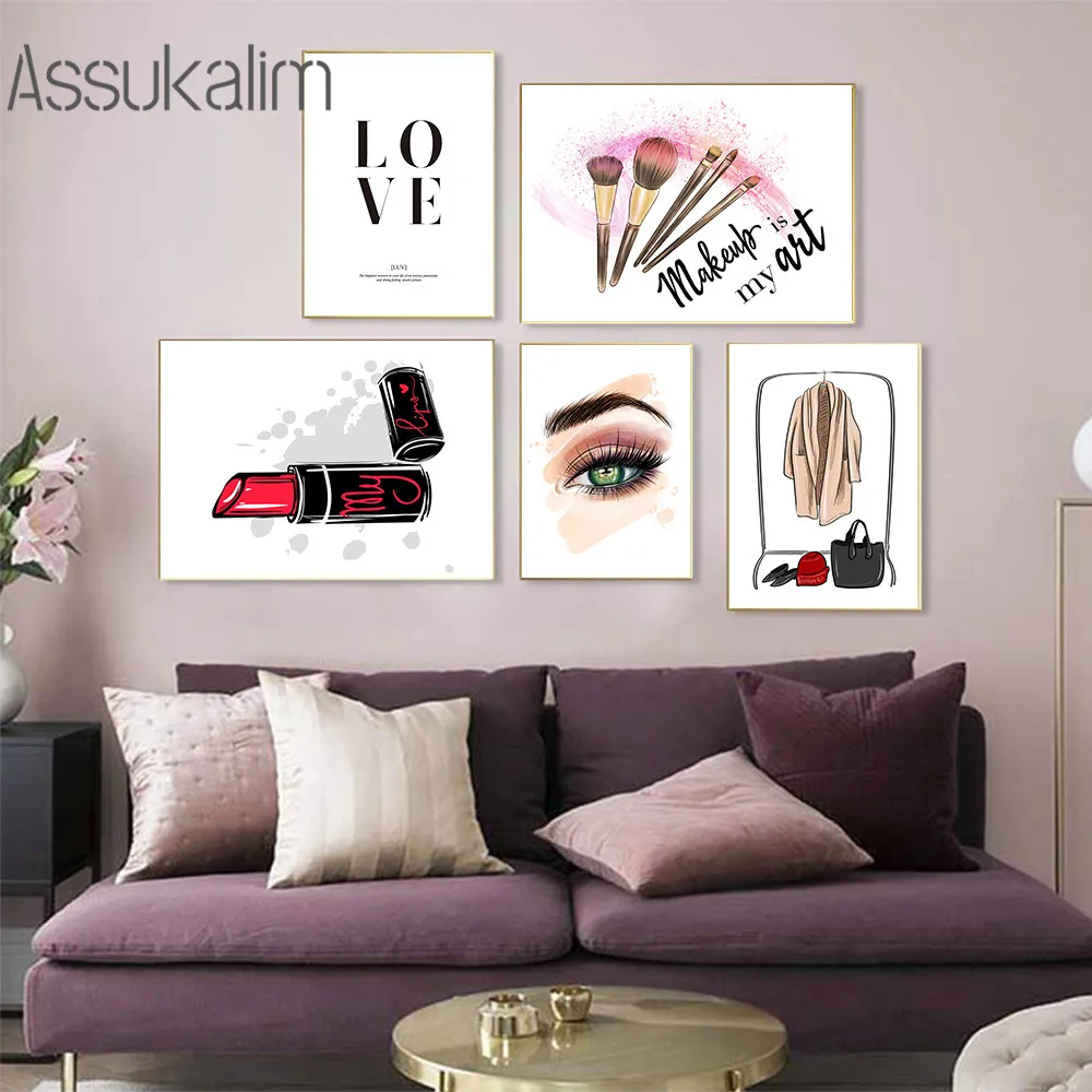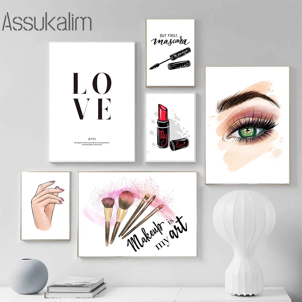 Модные художественный принт макияж холст картины губная помада плакат Нейл-арт настенная принты современный красота настенное украшение для салона фотографии