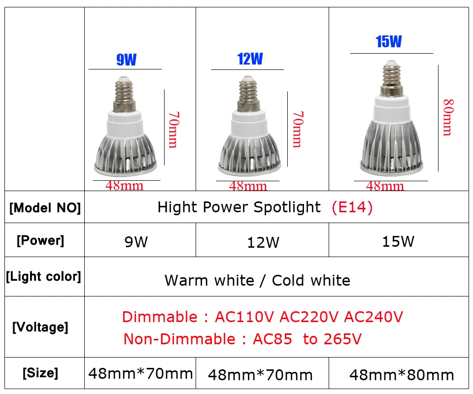 Диммер: E27/E14/GU10/GU5.3 AC110 или AC220V(Если вам нужно 110 В, пожалуйста, оставьте сообщениеСкажите нам)