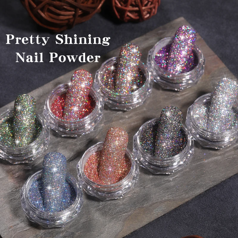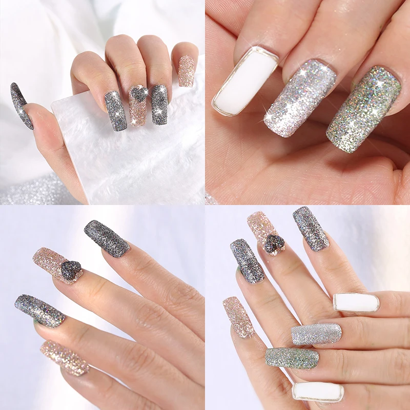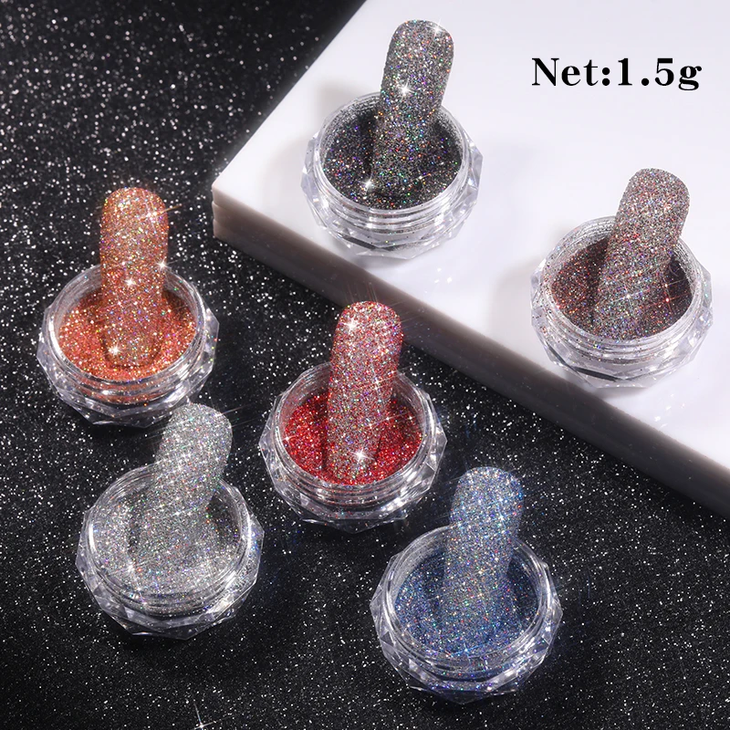 Блестящий Алмазный порошок для ногтей, переливающийся серебристый отражающий блеск для ногтей, мелкий Блестящий пигмент, украшения для ногтей, 1 коробка
