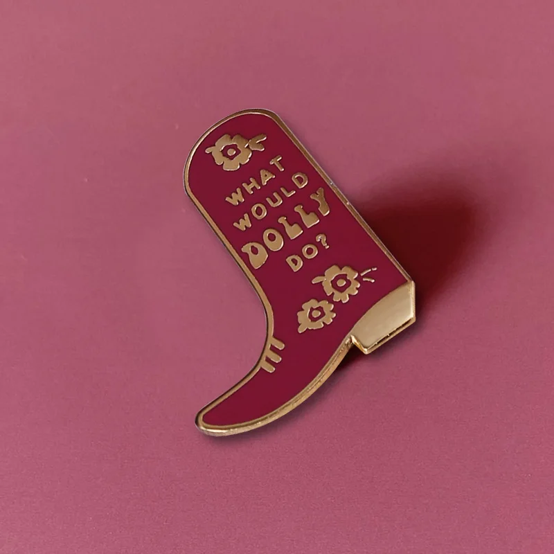 Призрак Долли Партон. WWDD что бы сделала Долли Кантри музыка. Значок с эмалью в виде ботинок, уникальный юмористический значок