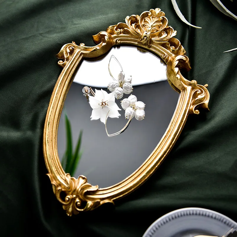 Винтажное подвесное Золотое зеркало для макияжа во французском дворцовом стиле зеркальное украшение для стен для домашнего декора