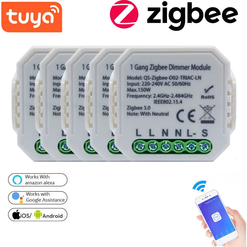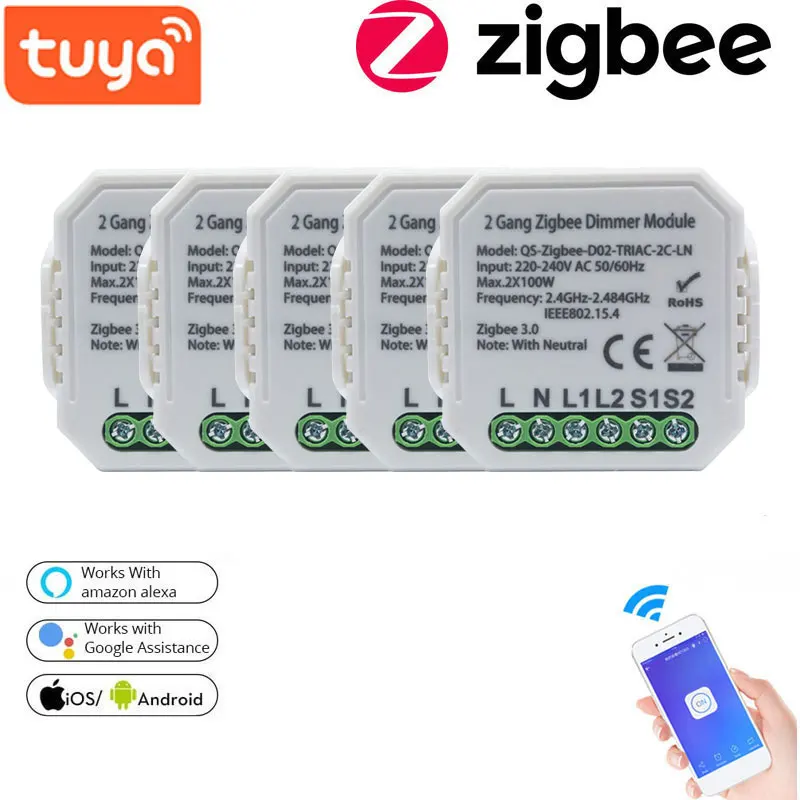 5 шт. Tuya Smart Zigbee диммер модуль 12 Gang 220V с нейтральным 2 Way Беспроводной Управление работает с Alexa Google