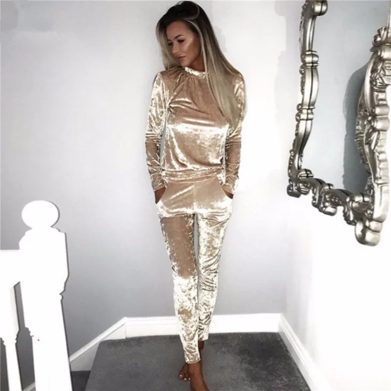 Осенний Женский Теплый Бархатный комплект из 2 предметов, спортивный костюм, мягкий гладкий бархатный домашний костюм, женский комплект для фитнеса