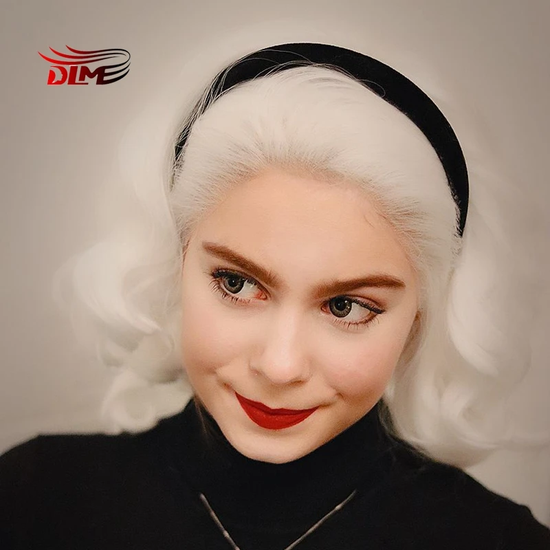 Парик DLME для женщин, термостойкие синтетические волосы, белые светлые короткие волосы, на шнуровке спереди, Сабрина, для косплея, короткий волнистый