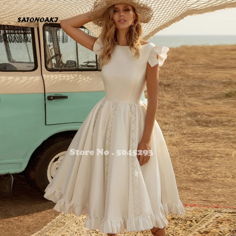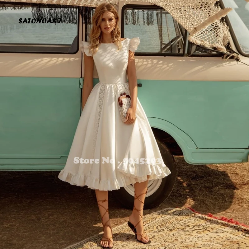 ТРАПЕЦИЕВИДНОЕ кружевное свадебное платье в стиле ретро длиной до к...