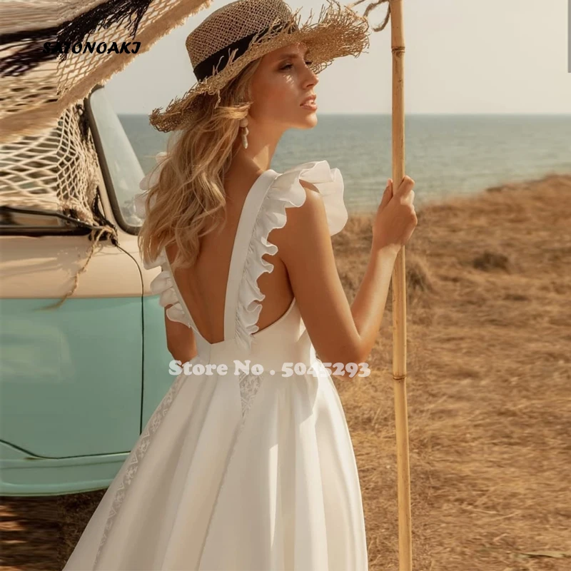 Романтическое пляжное свадебное платье с V-образным вырезом и длинн...