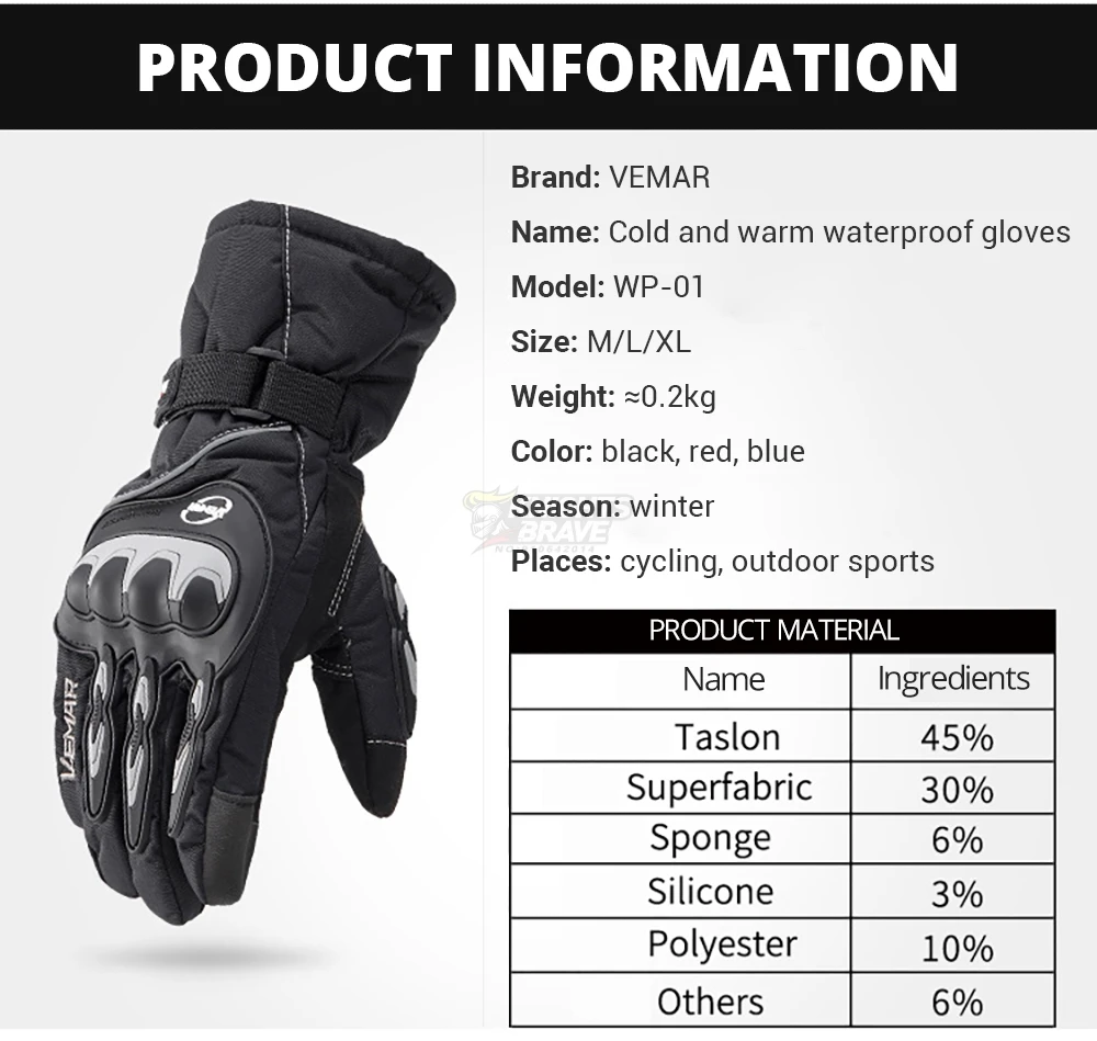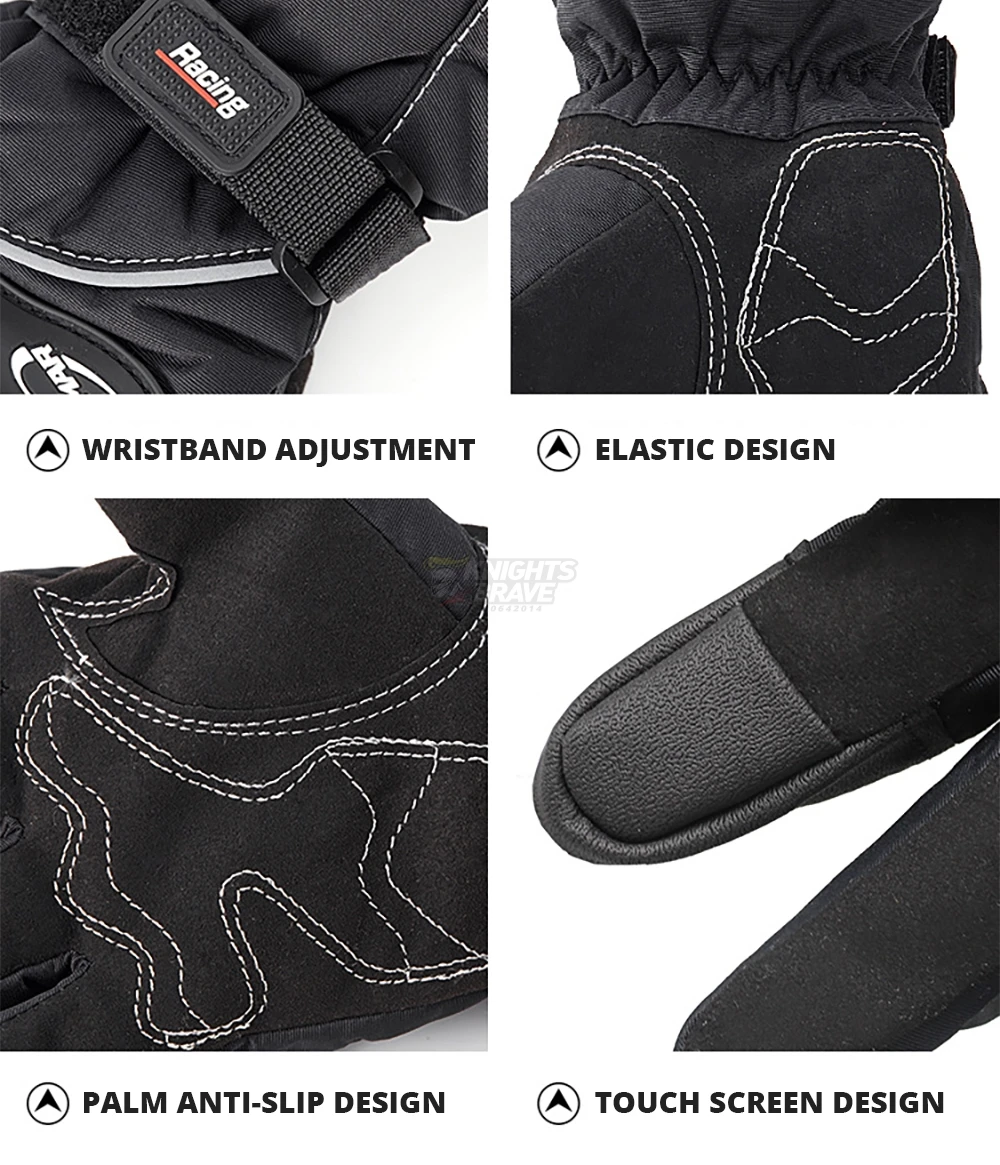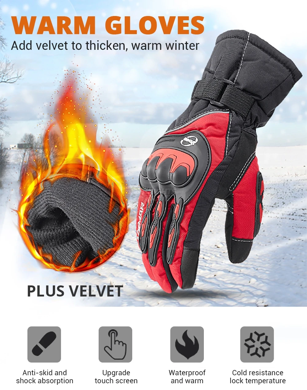 Особенности:100% полная защита: жесткая пластиковая защита суставов, Силиконовая защита пальцев и Многослойный материал ладони, защищает руки от ударов и повреждений при истиранииПлотно прилегающий и приятный захват: защитные перчатки очень хороши и плотно прилегают, как только вы их наденете, не имеют дополнительного объема в кончиках пальцев или на ладони. Противоскользящий резиновый материал в ладони обеспечивает хорошее сцепление без сжигания мышц рук, хорошо подходит для длительного вожденияТеплые и ветрозащитные: подкладка с мягким сенсорным слоем, длинные манжеты с защитой от ветра, регулируемый затягивающийся пояс на запястье, держите руки в тепле во время быстрой езды в Зимние холодные дниВодонепроницаемость: Эти перчатки для рук на мотоцикле являются водонепроницаемыми, не проблема в езде в течение нескольких часов под нормальным дождем или даже одного часа под сильным дождем, Всегда держите руки сухими и теплыми в холодную дождливую погодуФункция сенсорного экрана: Встроенный специальный материал на указательном пальце, позволяет использовать ваш мобильный телефон, не нужно снимать перчатки в холодные дни