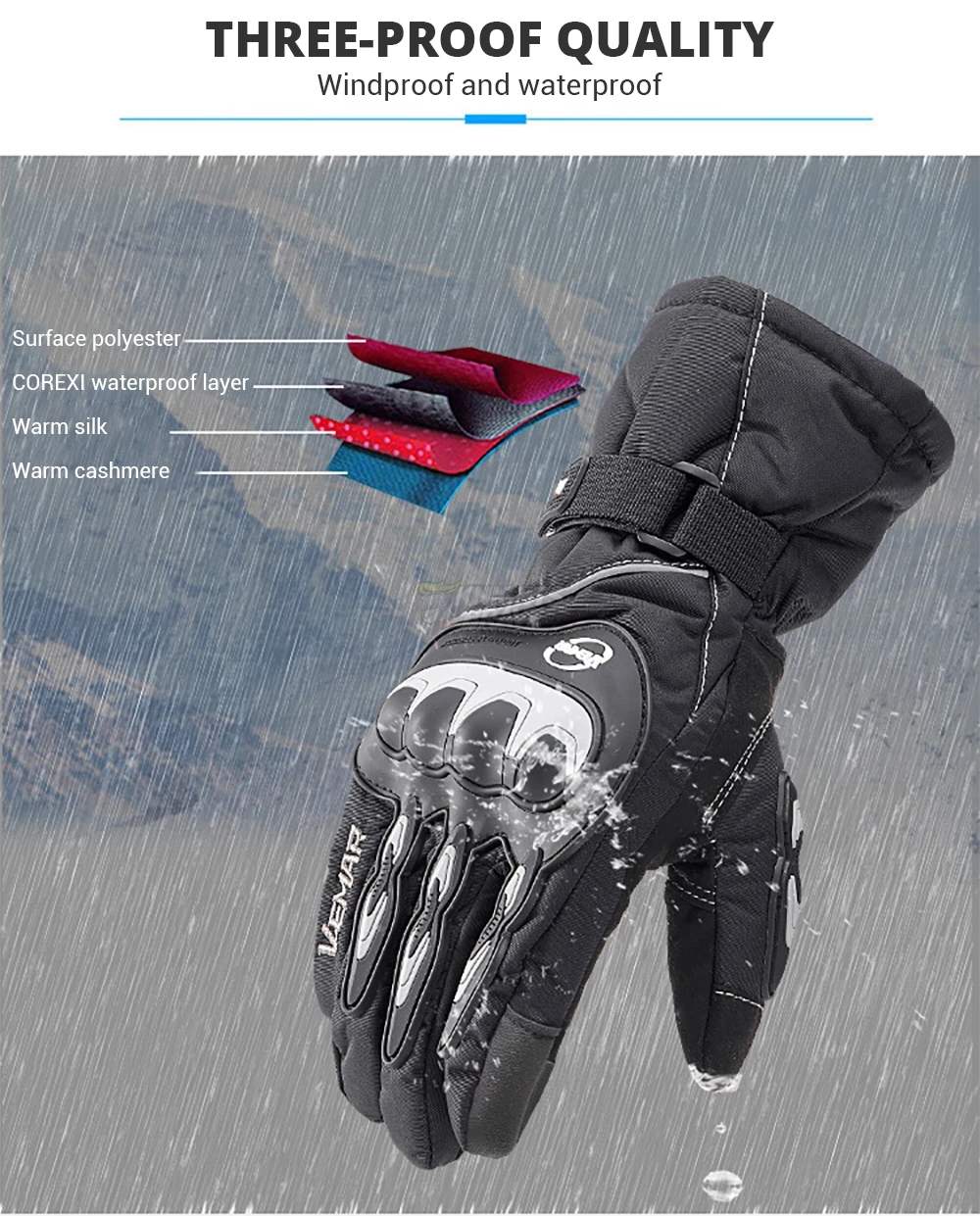 Зимние мотоциклетные перчатки, водонепроницаемые перчатки, теплые м...