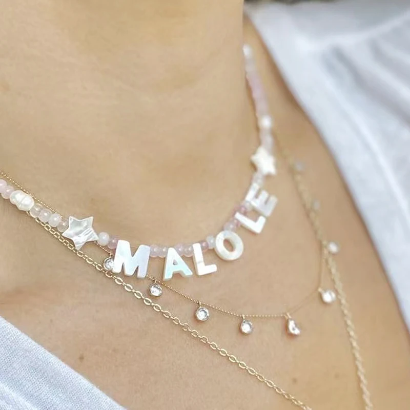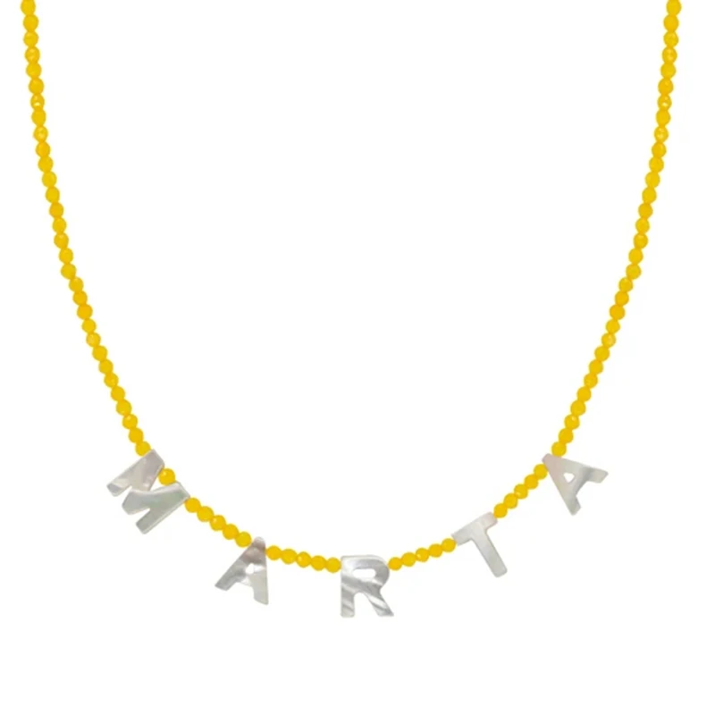 Женское Ожерелье с именем из натурального камня ручной работы, персонализированный чокер с надписью, модный чокер 2021, новый год подарки для девочек