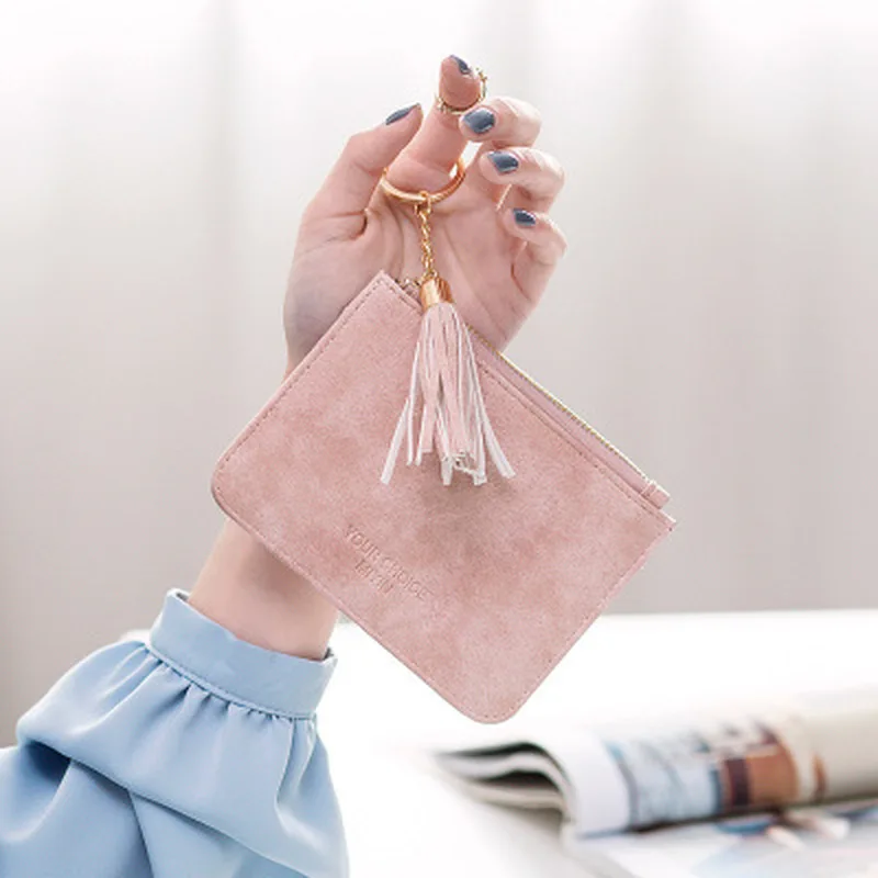 Женский кошелек с кисточкой 2021, маленький симпатичный кошелек, женские короткие кожаные кошельки, кошельки на молнии, Женский кошелек, клатч