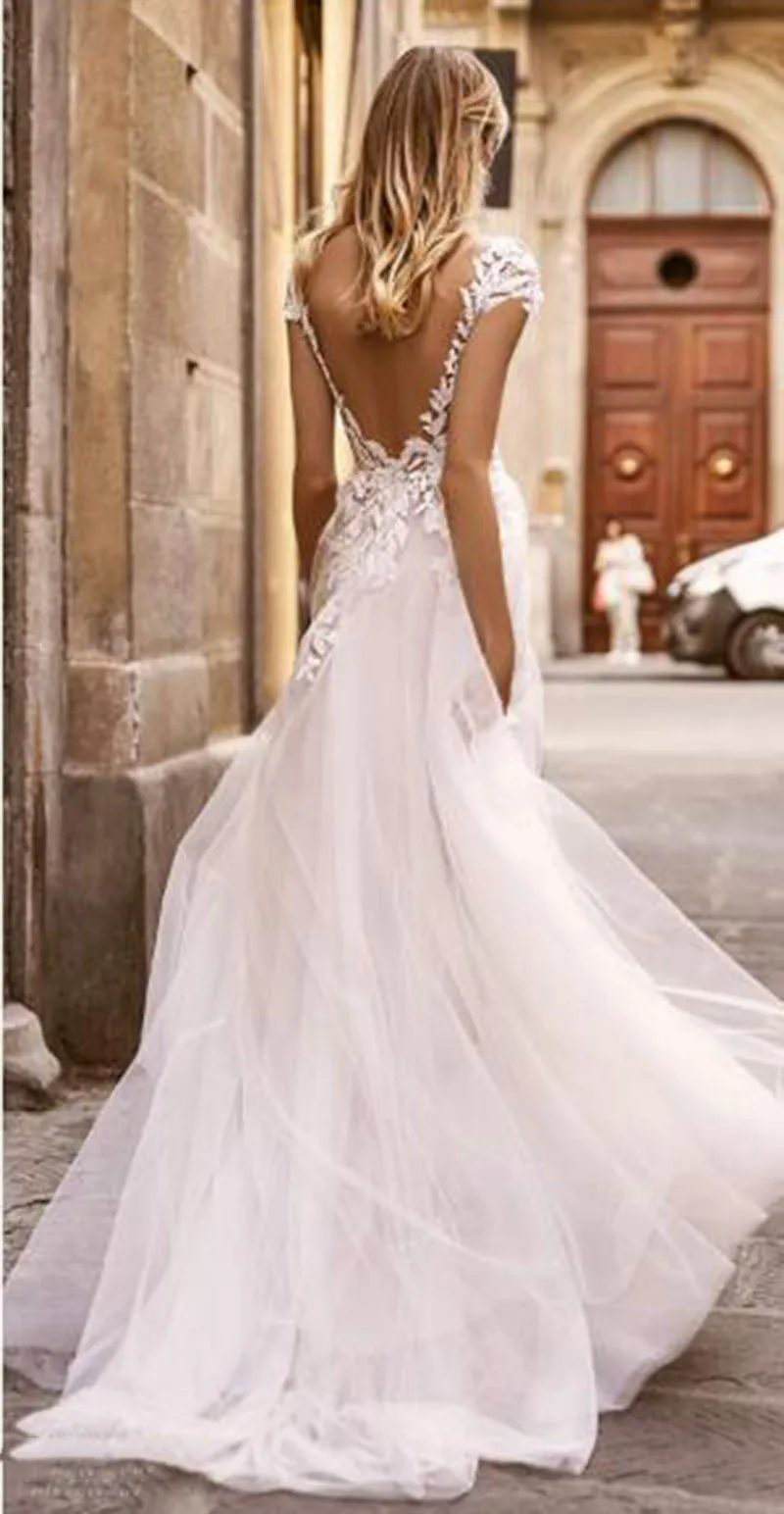 Пляжные свадебные платья, кружевные аппликации, сексуальное богемное платье невесты с открытой спиной, свадебное платье в стиле кантри, размера плюс