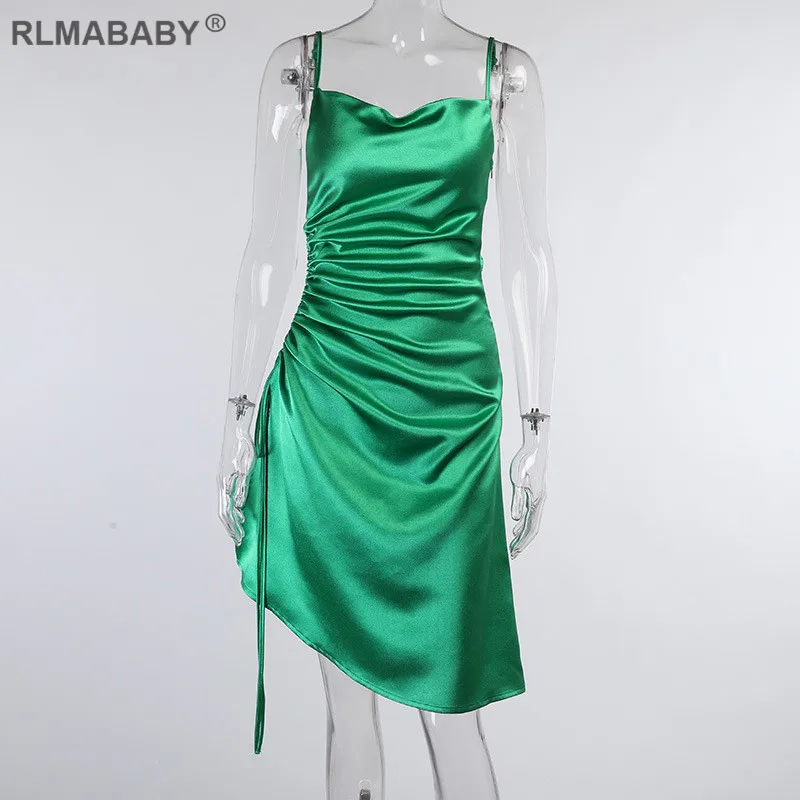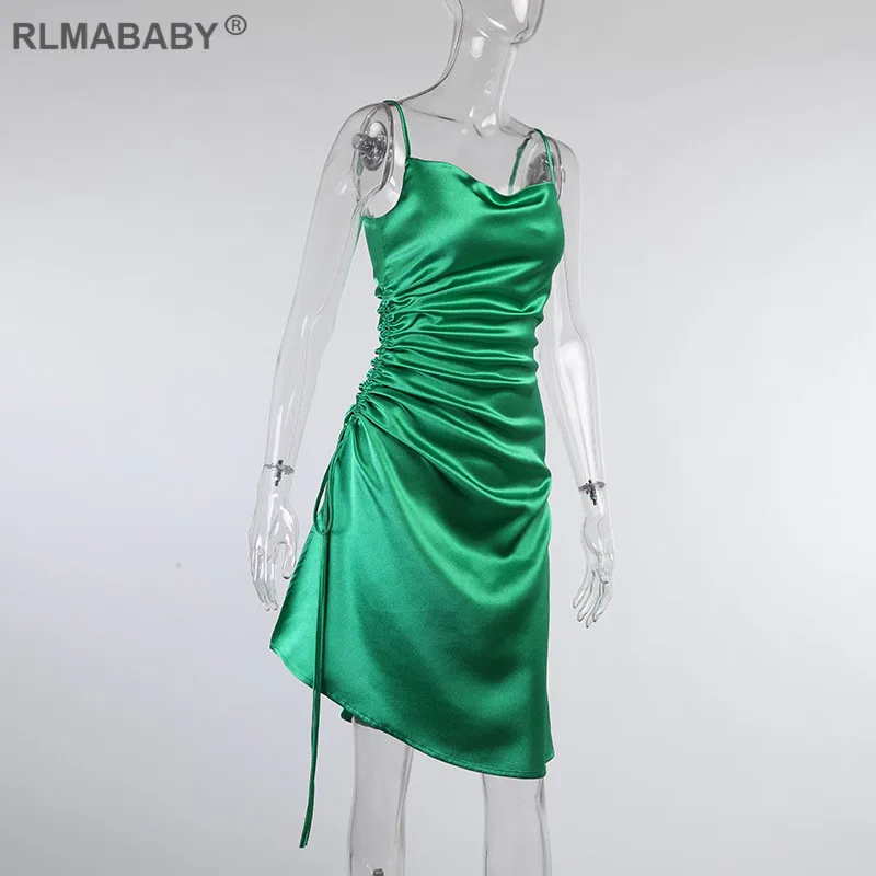 Женское атласное платье с разрезом сбоку, Элегантное Вечерние Платье на тонких бретелях до колен, сексуальное летнее Клубное платье