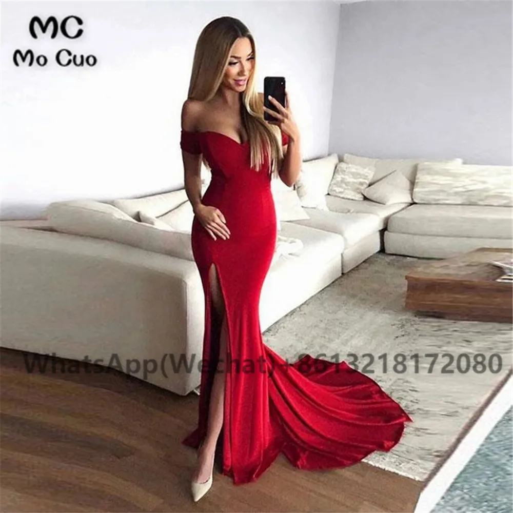 Платье подружки невесты с открытыми плечами с длинными рукавами и разрезом сбоку; Платье русалки для свадебной вечеринки; Эластичные атласные платья свидетельницы