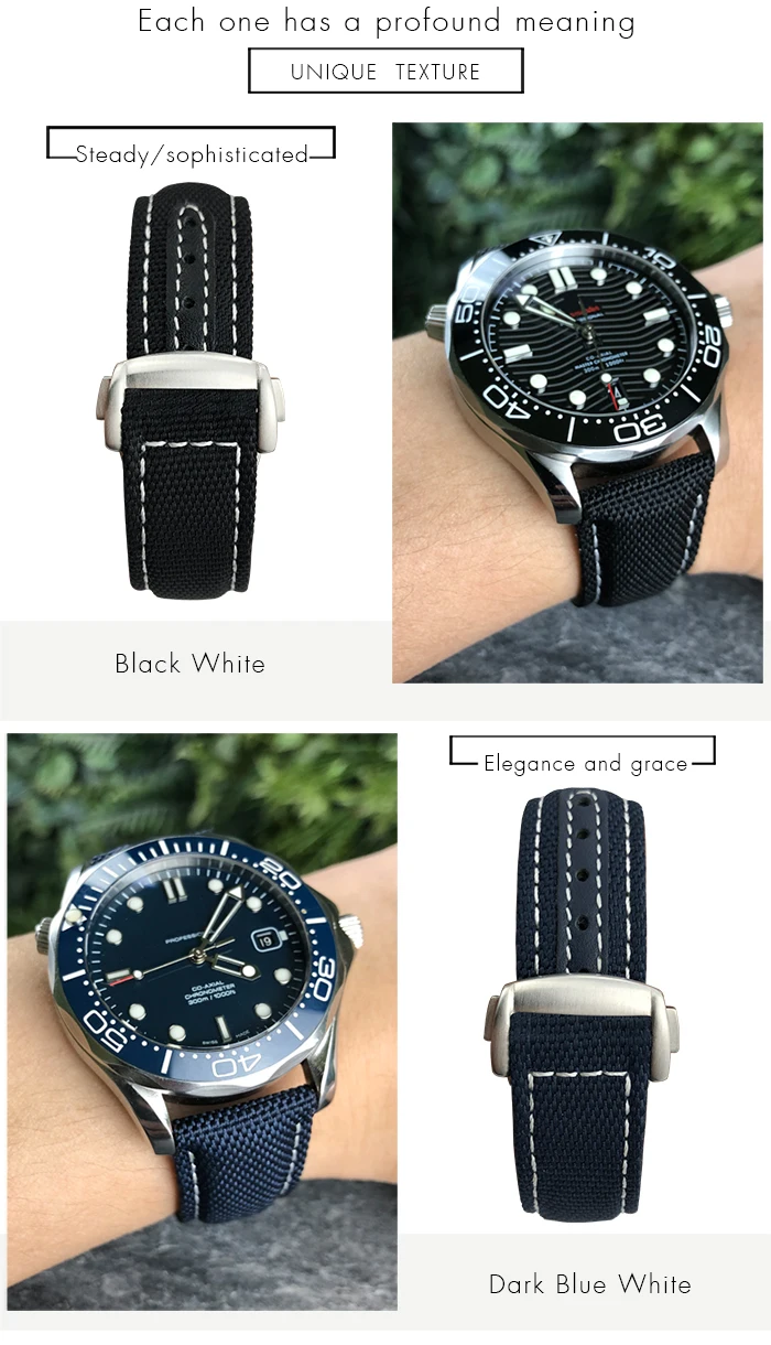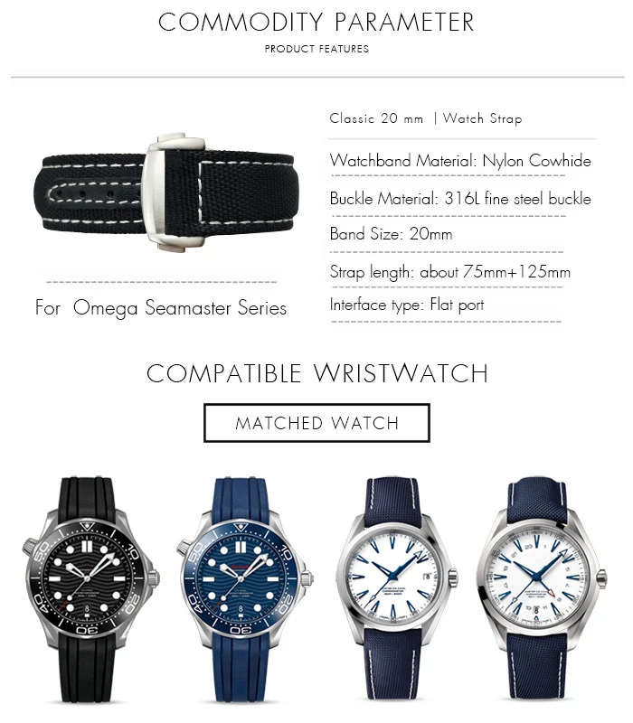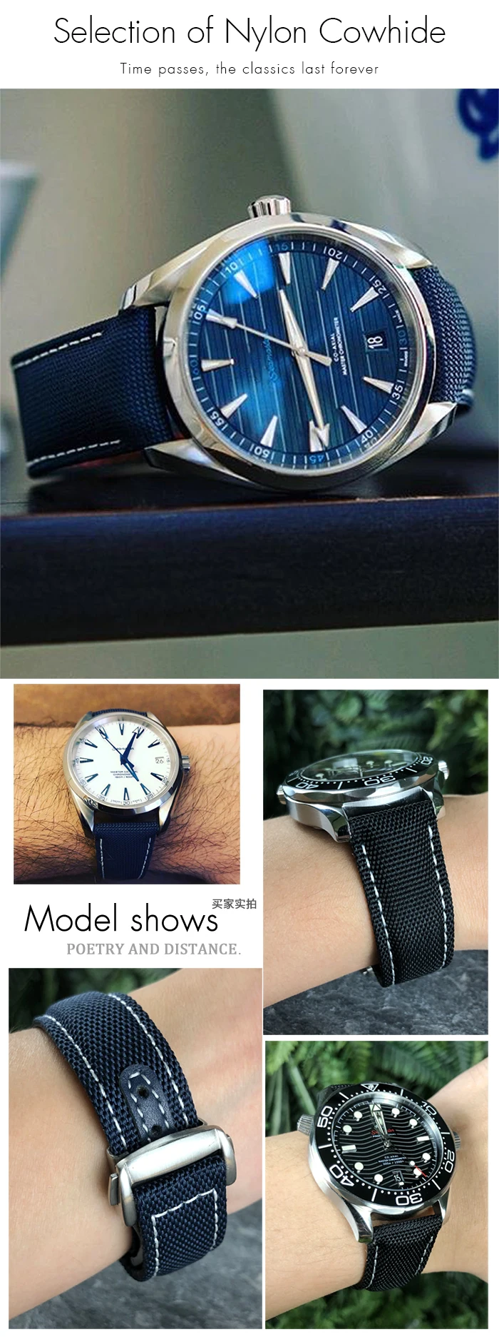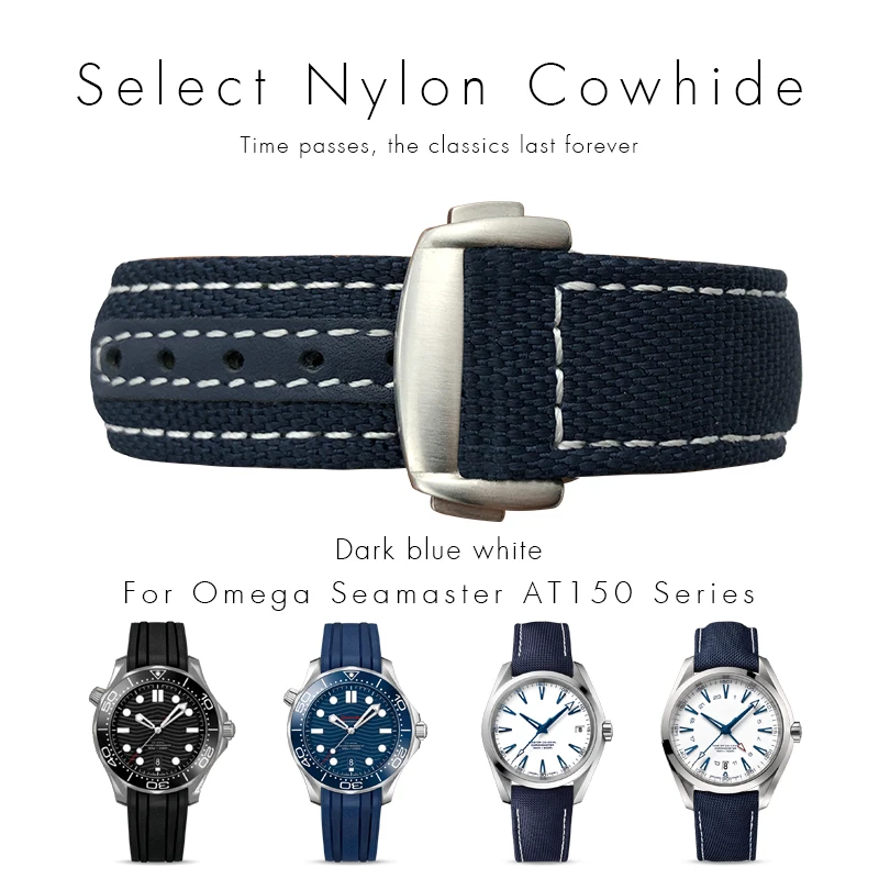 Ремешок нейлоновый для часов Omega AT150 AQUA TERRA Seamaster 300, 19 мм, 20 мм