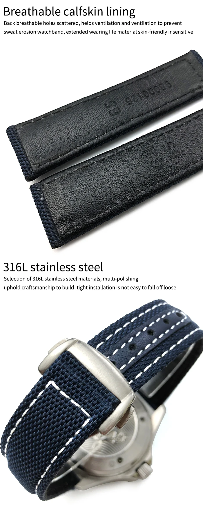 23 мм Высококачественный нейлоновый волоконный кожаный холщовый рем...