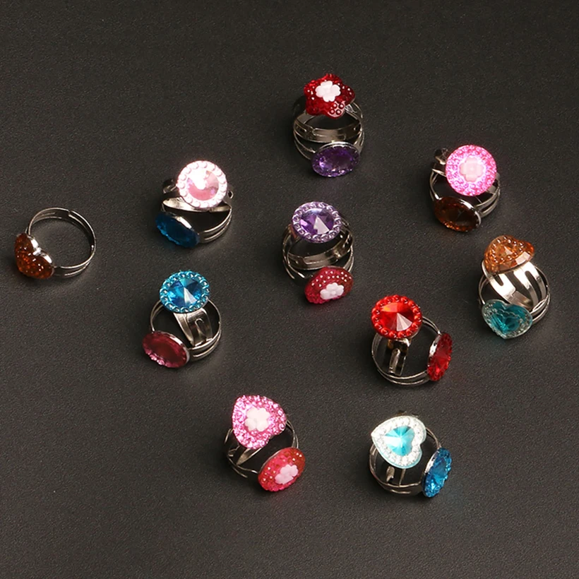 Кольца с драгоценными камнями, которые загипнотизируют ваших дочерей. Использование ярких цветов и драгоценных камней. Идеально подходит для сумок на день рождения, ролевых игр и колец для нарядов, чавечерние я, коробки для сокровищ и многого другого. Мы упаковали эти кольца для девочек в подарочную коробку в форме сердца, это хороший подарок для вашей принцессы. Идеально подходит для дня рождения, чавечерние я, карнавала, коробки с сокровищами и многого другого. Цвет: стиль, Случайная Доставка Материал: сплав Посылка входит: 10 колец (Случайная Доставка)