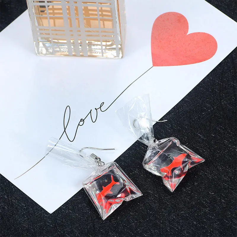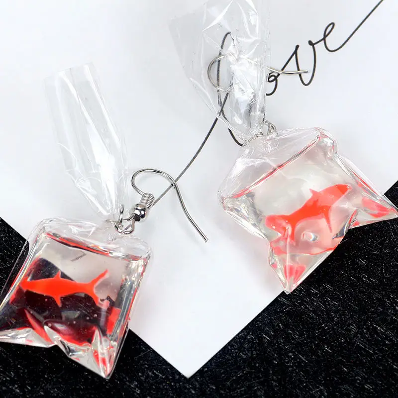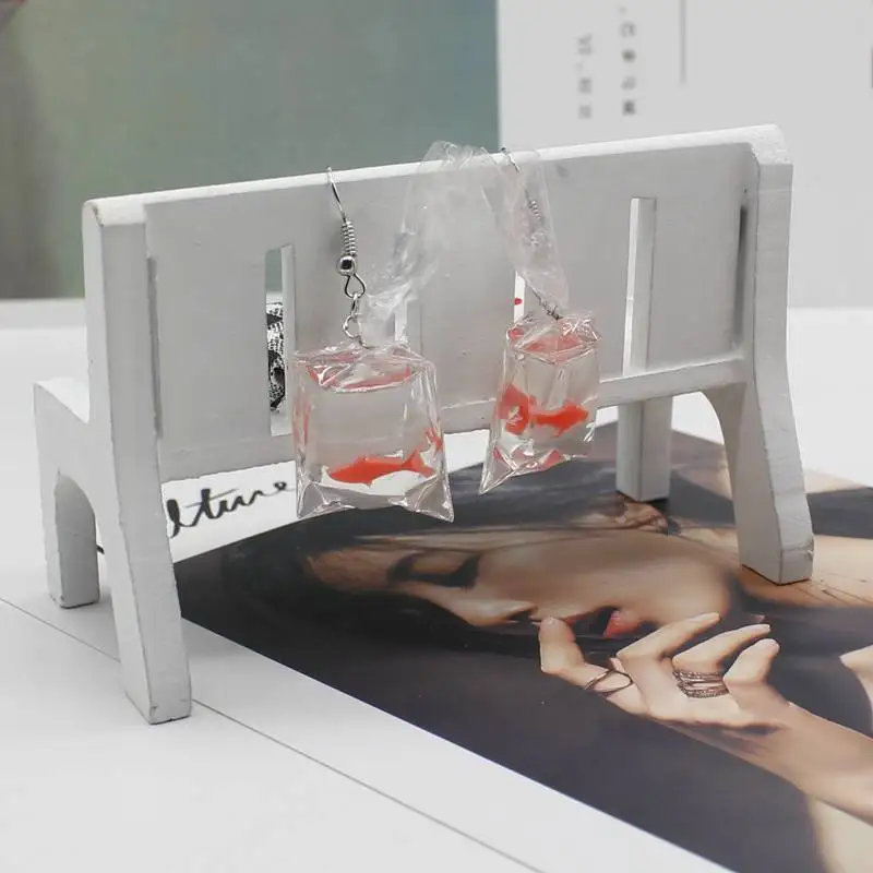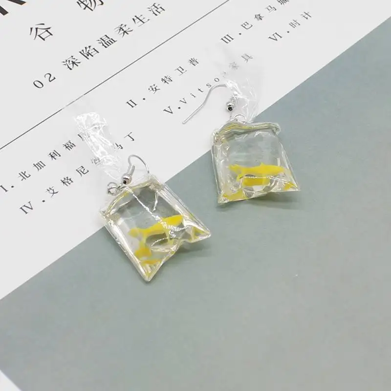 Серьги-Крючки для девочек в японском и корейском стиле, прозрачные, серьги золотые рыбки