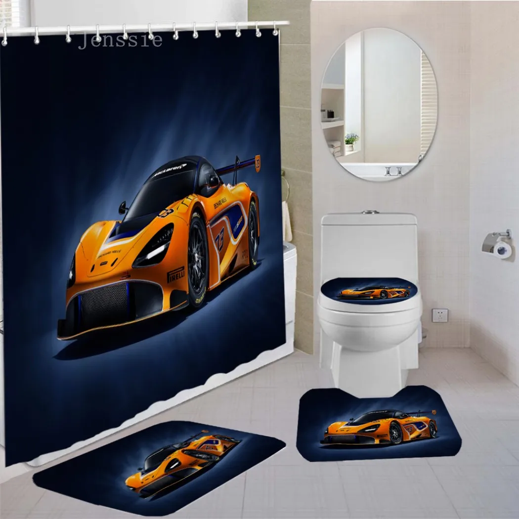 Гоночная мотоциклетная душевая занавеска, набор ковриков с ковровым покрытием для ванной комнаты, прочная занавеска с крючками