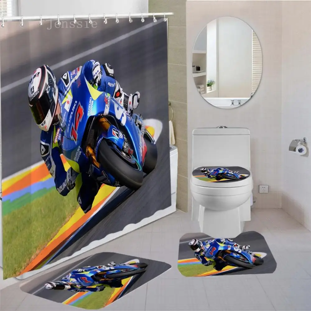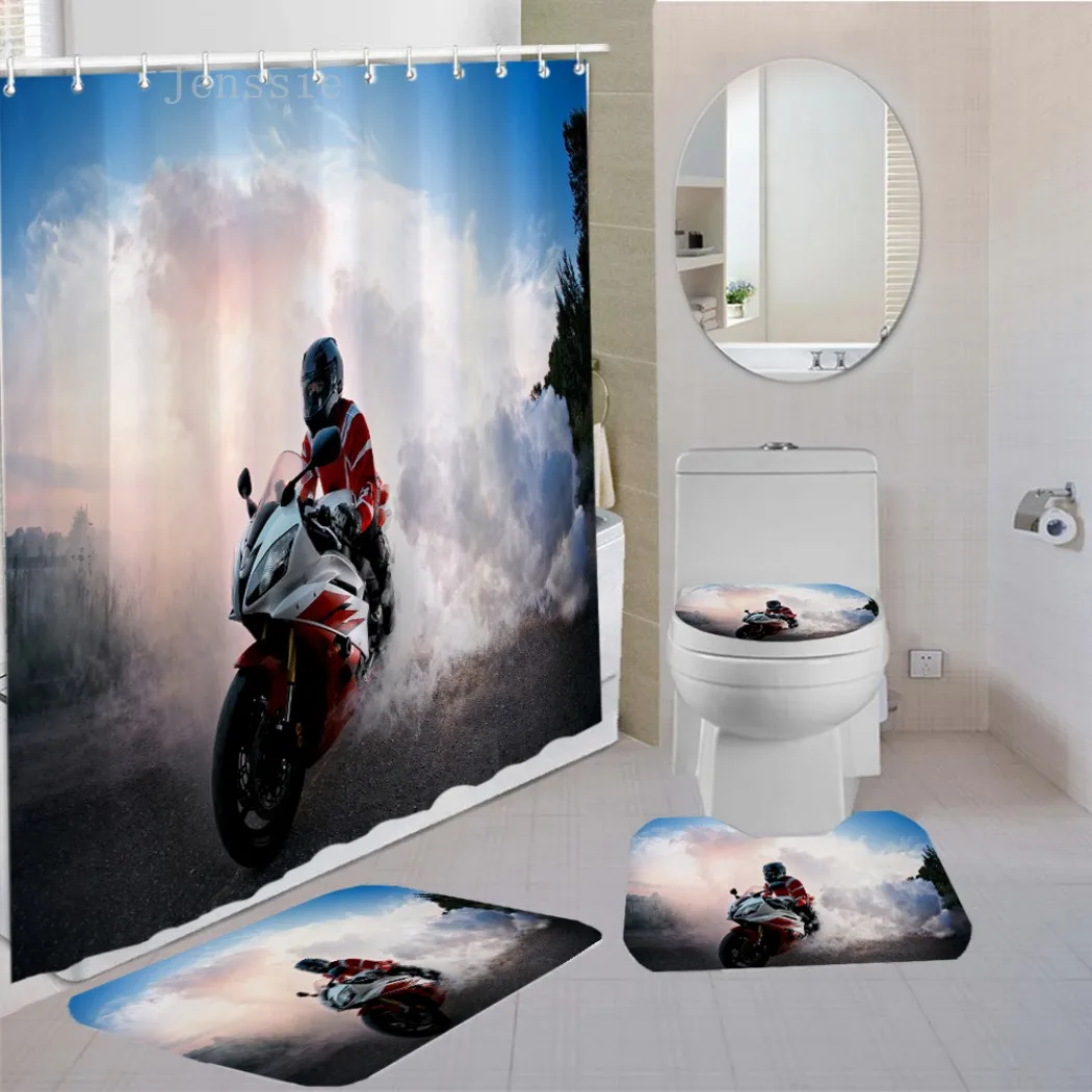 Гоночный мотоцикл набор штор для душа с ковром для ванной экран для дома ванна для гостиницы перегородка прочный занавес s крючки