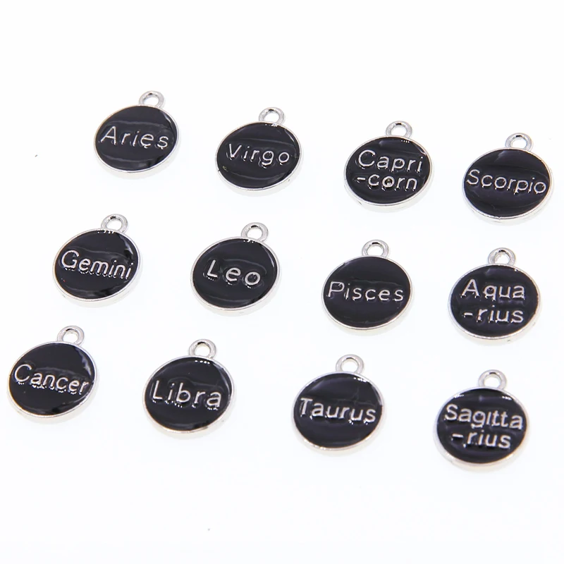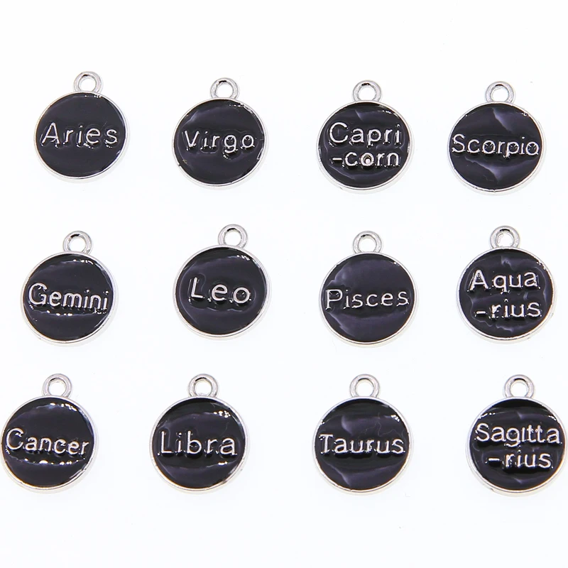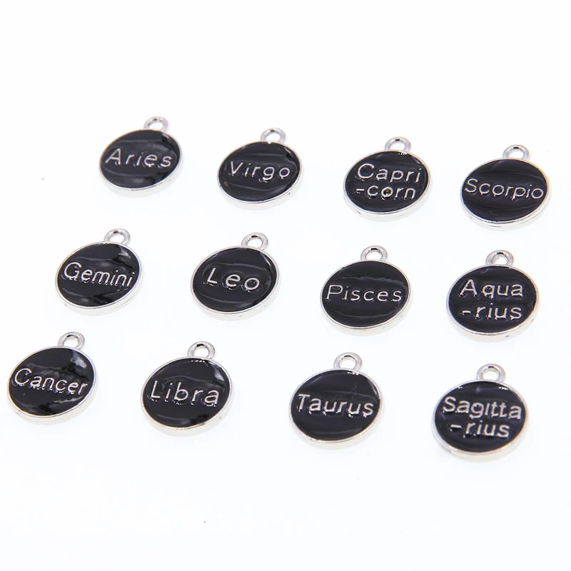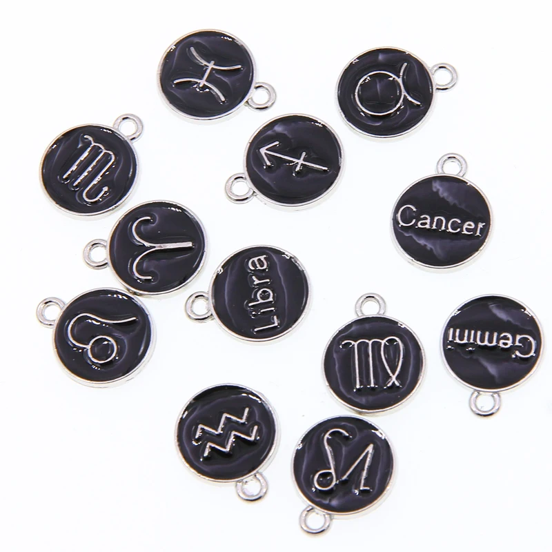 Черная эмаль 12 шт.компл. металлический сплав эмаль знаки Зодиака Подвески Diy ручной работы ювелирные изделия аксессуары