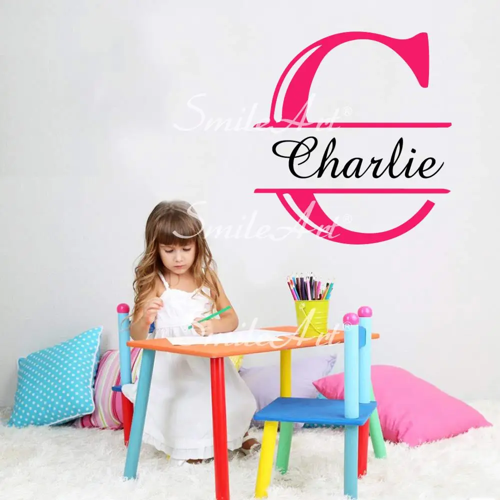 Двойной Цвет Пользовательское Имя стены Стикеры виниловые наклейки для ребенка декор комнаты обои персонализированный Стикеры s детская комната Наклейка на стену