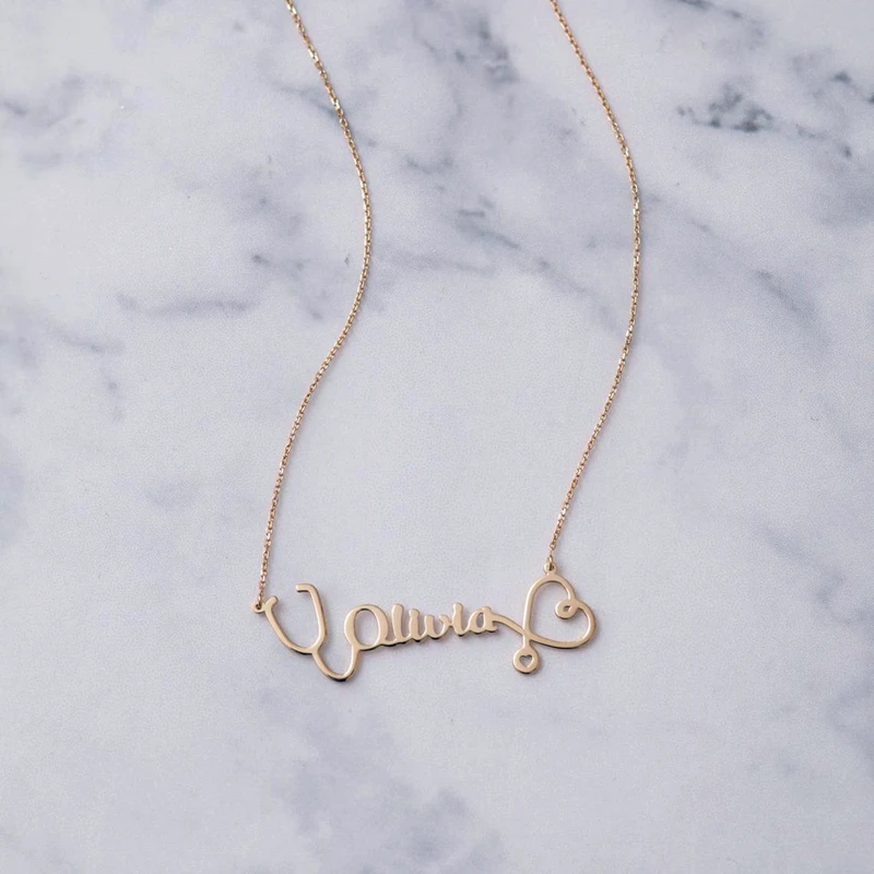 Дизайн по заказу покупателя Симпатичные Стетоскоп Имя ожерелье медицинского Брендовое ювелирное изделие, на заказ, медсестра табличка колье ожерелья для женщин и девушек