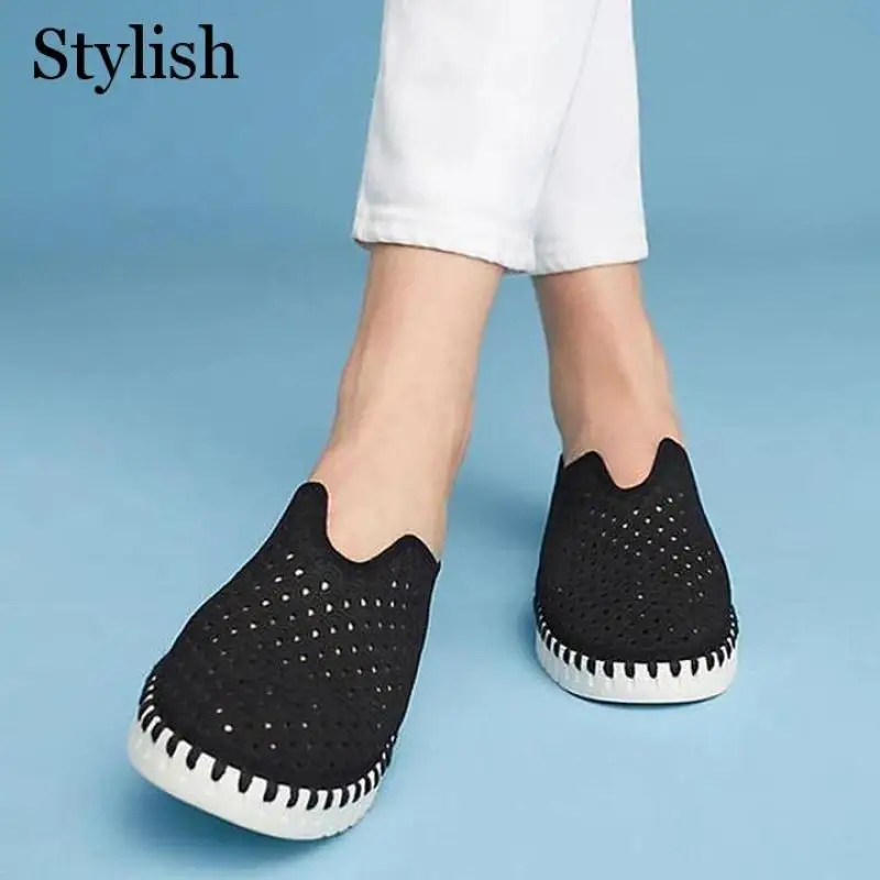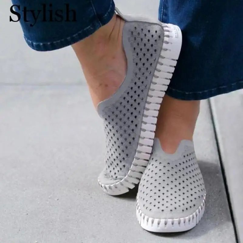 Женская повседневная обувь на плоской подошве, весна-лето, Женская Вулканизированная обувь, однотонные дышащие кроссовки без шнуровки с вырезом, размера плюс
