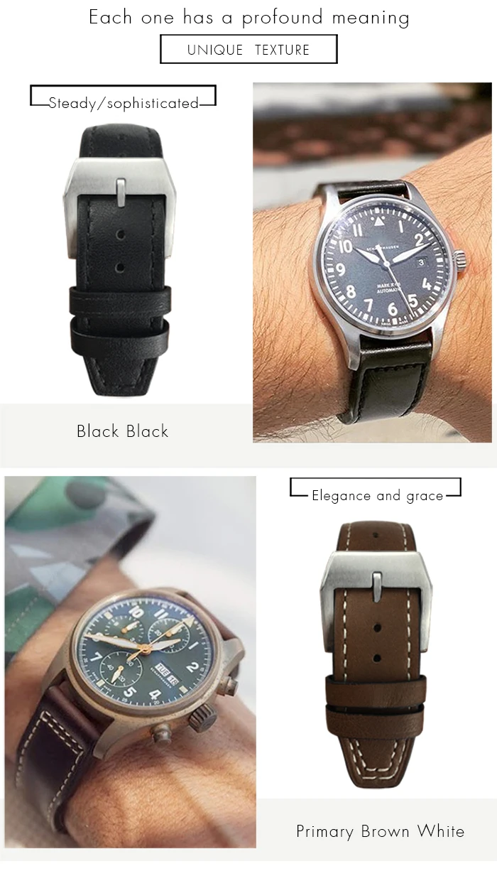 Ремешок кожаный для мужских часов, черный синий коричневый браслет ...