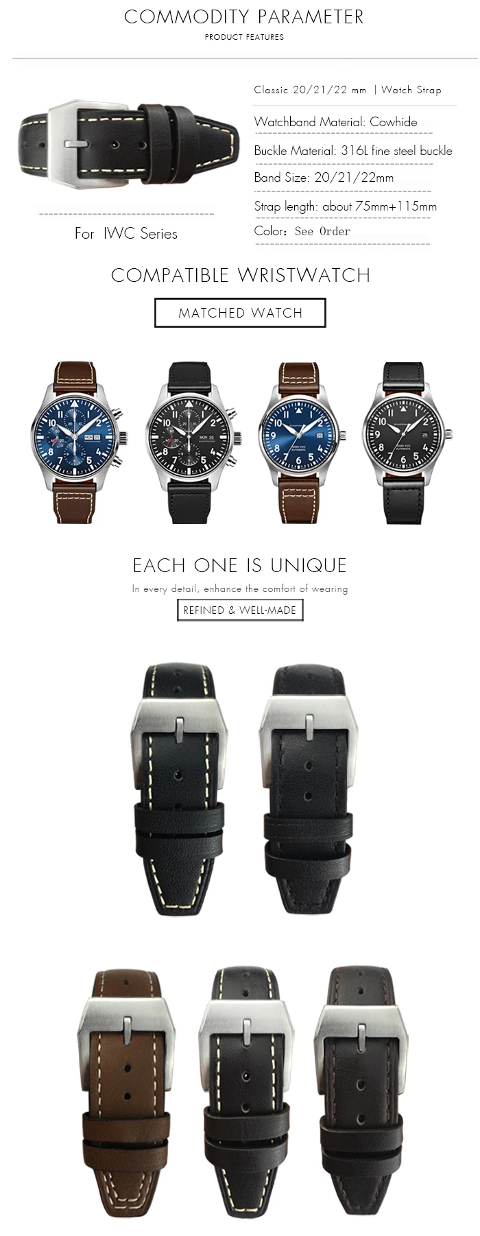 Итальянский ремешок для часов из воловьей кожи, 20 мм, 21 мм, 22 мм...