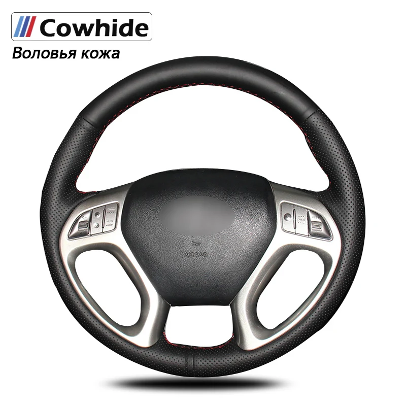 Черные чехлы на руль из натуральной кожи ручной работы для Hyundai ix35