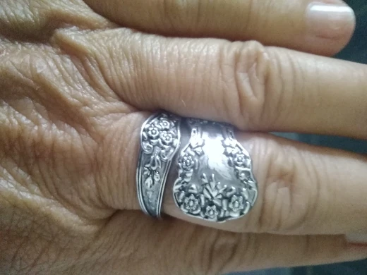 Кольцо женское винтажное серебристое с цветком лотоса и ложкой