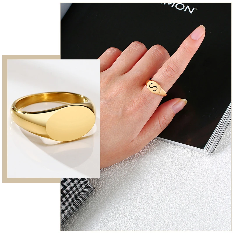 Кольцо-печатка женское, с гравировкой под золото, 9 мм, из нержавеющей стали