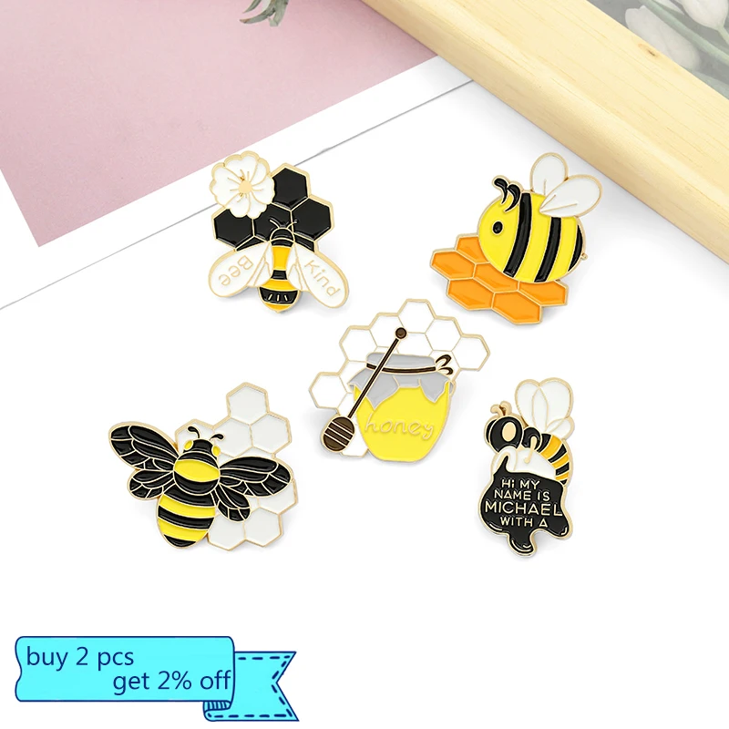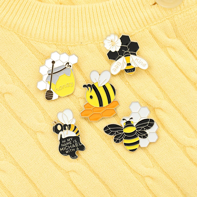 Эмалированные булавки с мультяшными пчелами и медом, милые украшения