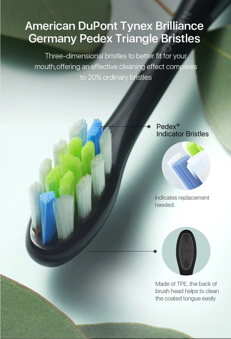 Трехмерные щетинки лучше подходят для рта, обеспечивая эффективный эффект очистки по сравнению с 20% обычными щетинками
